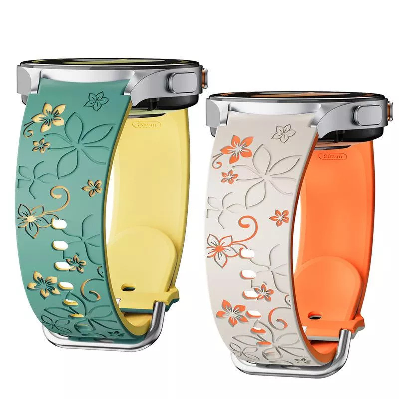 Elevate your Samsung Galaxy Watch with the Engraved Silicone Strap, a perfect blend of style, comfort, and functionality. Featuring a stunning two-tone floral engraving, this strap adds an artistic flair to your watch, making it a standout accessory for any occasion. The seamless design ensures a snug fit, enhancing both aesthetics and comfort. Whether you’re at the gym, in the office, or out for a formal dinner, this strap complements your style effortlessly.