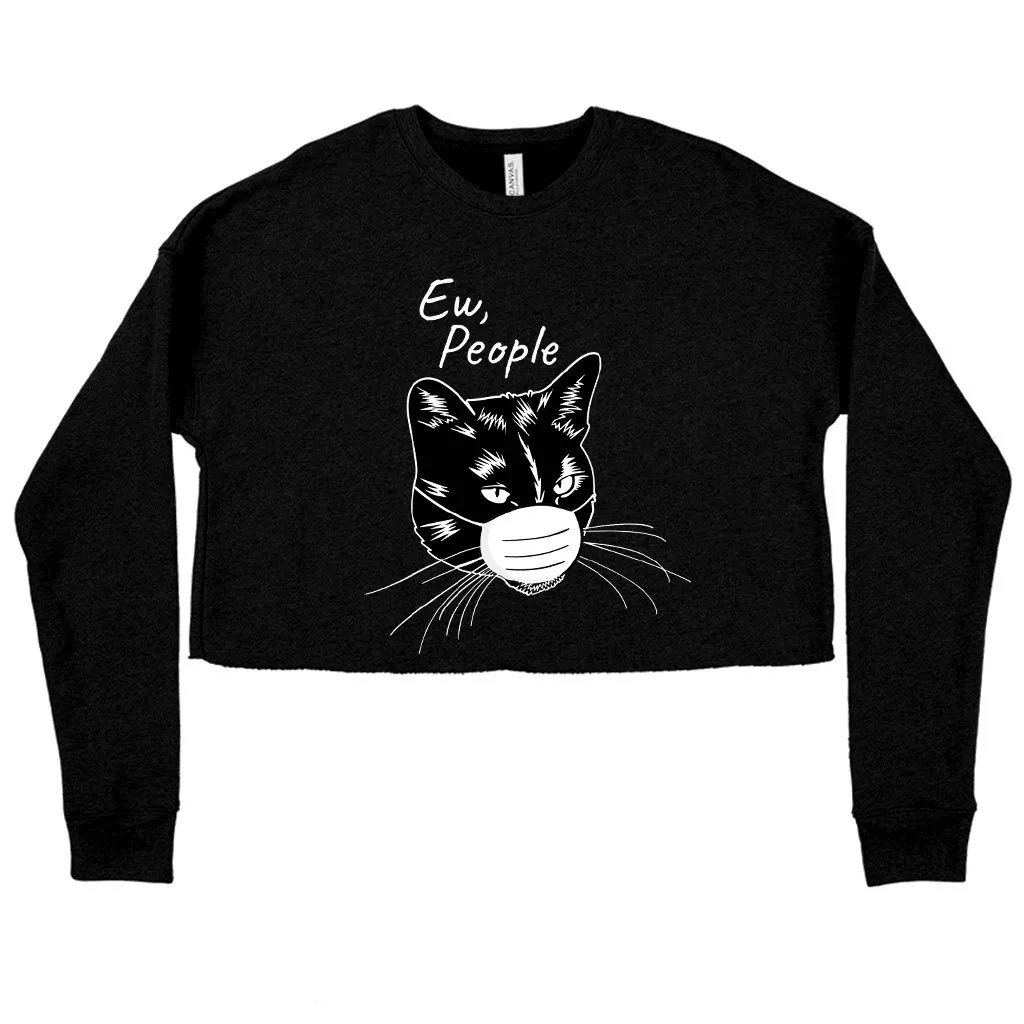 Ew People Women’s Cropped Fleece Funny Sweatshirt – Cat Sweatshirt for Sale