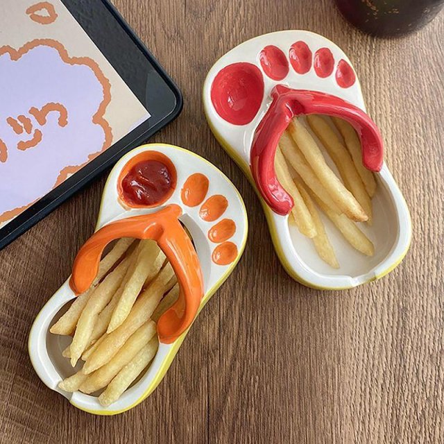 Unlike ordinary dishes, this flip flop-shaped saucer stands out for its unique design and versatility. Whether you’re hosting a dinner party, enjoying a casual meal with family, or setting up an outdoor BBQ picnic, it makes serving condiments both fun and functional. The separated spaces prevent sauces from mixing, so every flavor stays pure and delicious.