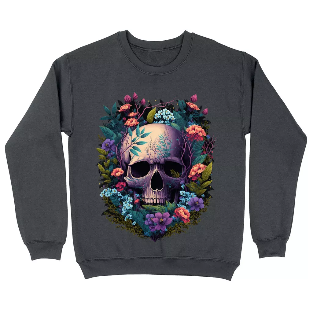Floral Skull Sweatshirt – Gothic Crewneck Sweatshirt – Cool Sweatshirt
