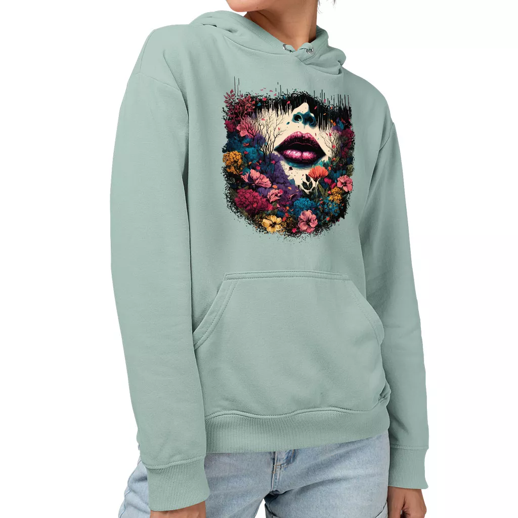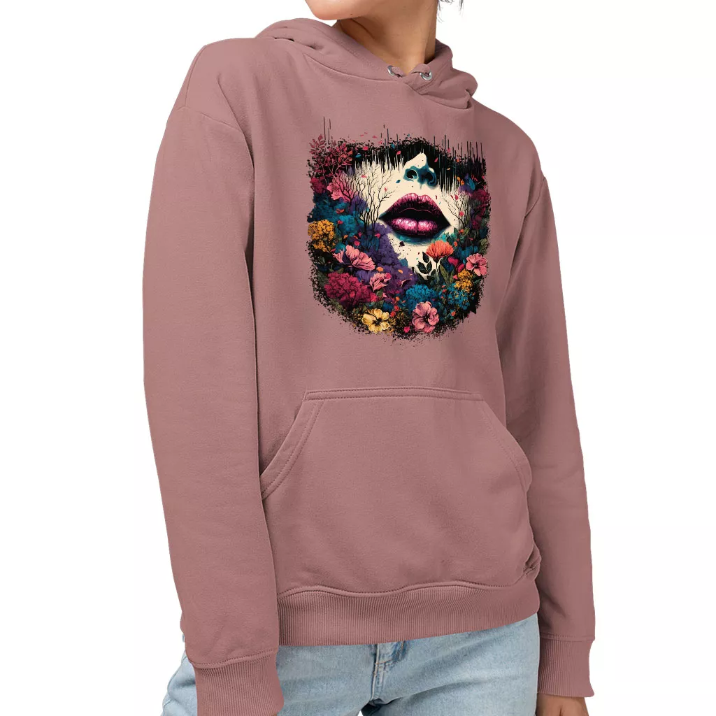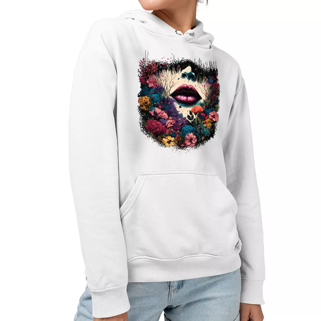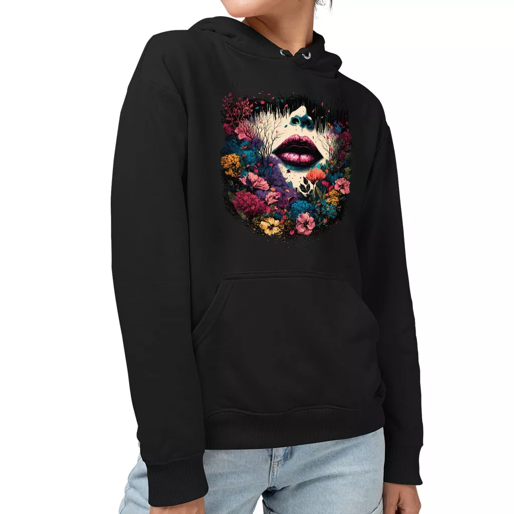 Flower Design Sponge Fleece Hoodie – Lips Hoodie – Illustration Hooded Sweatshirt