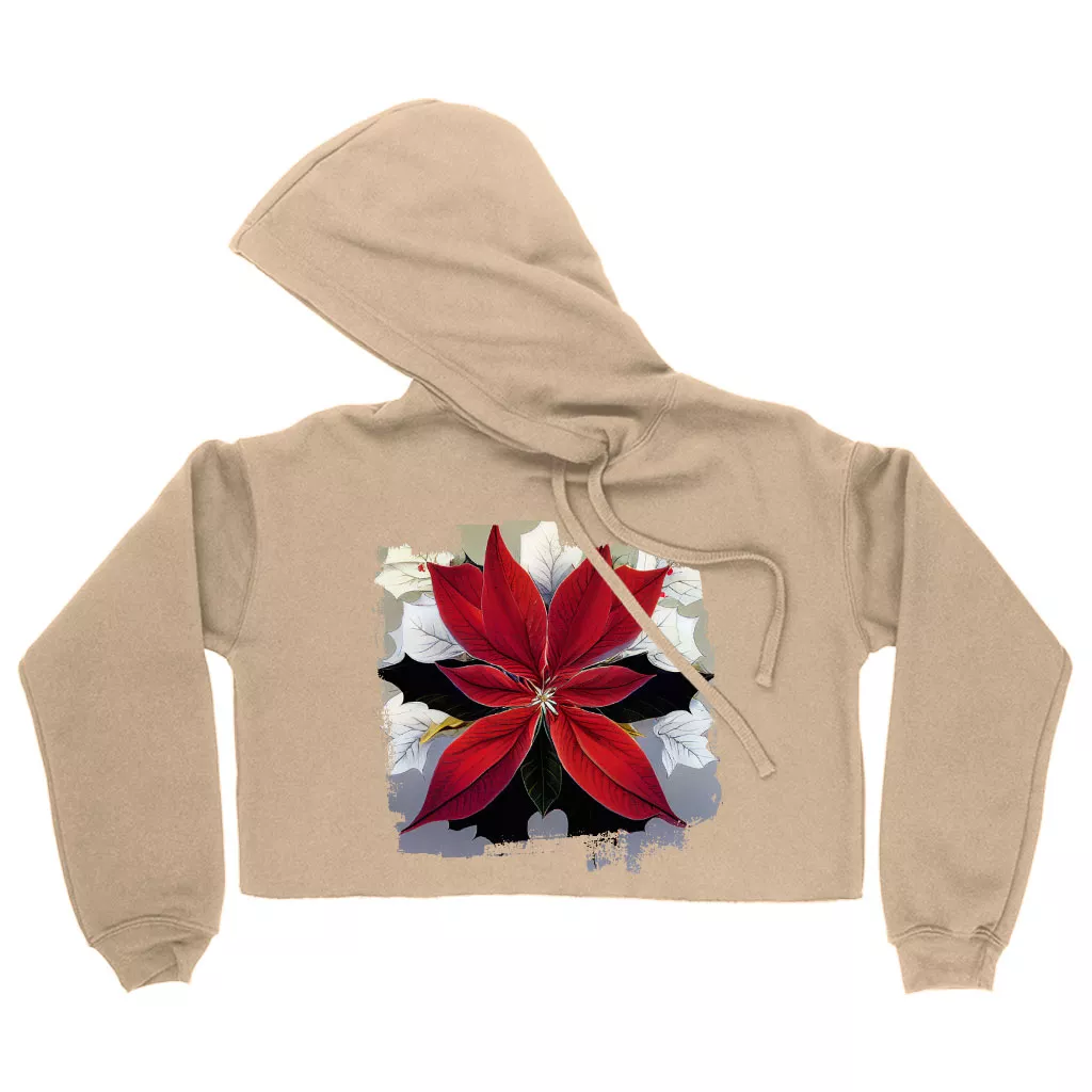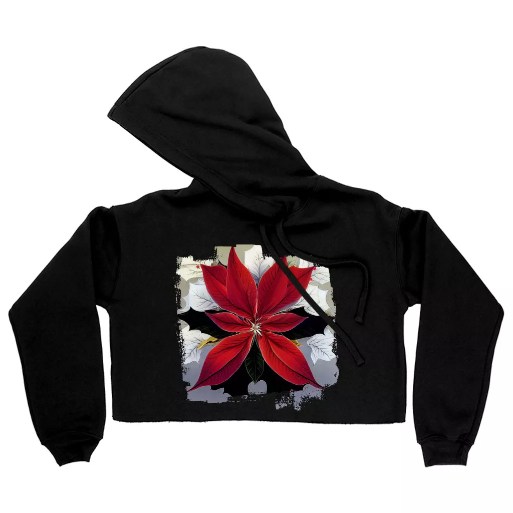 Flower Design Women’s Cropped Hoodie – Printed Cropped Hoodie – Themed Hooded Sweatshirt
