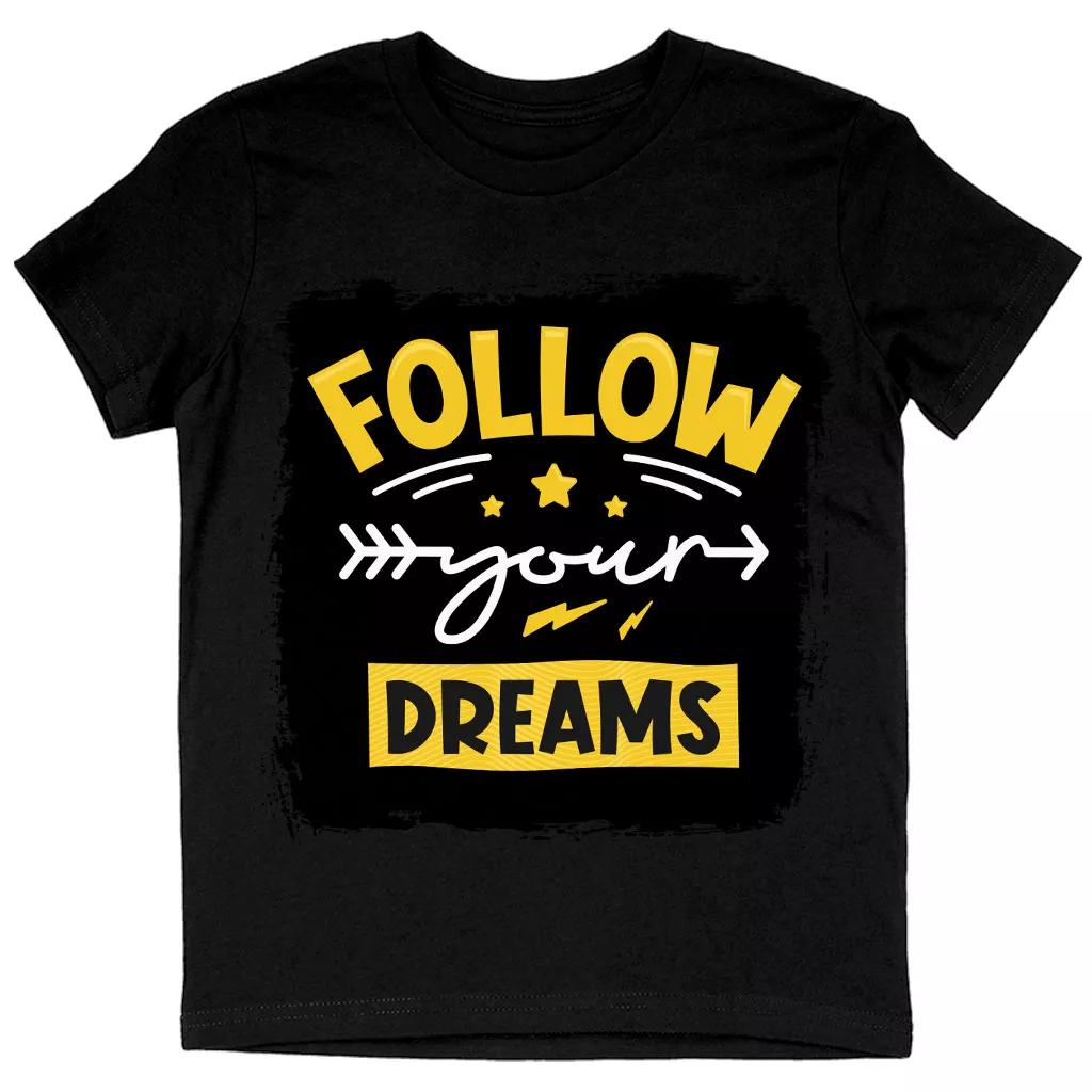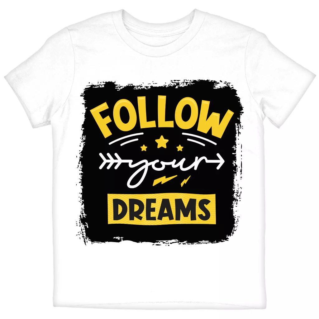 Follow Your Dreams Kids’ T-Shirt is no ordinary piece of clothing. Its crew neck and short