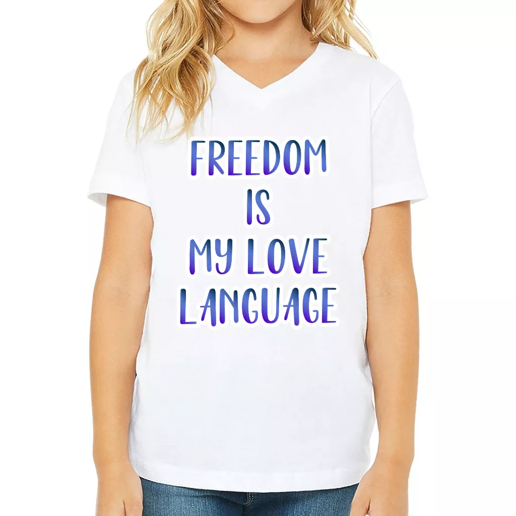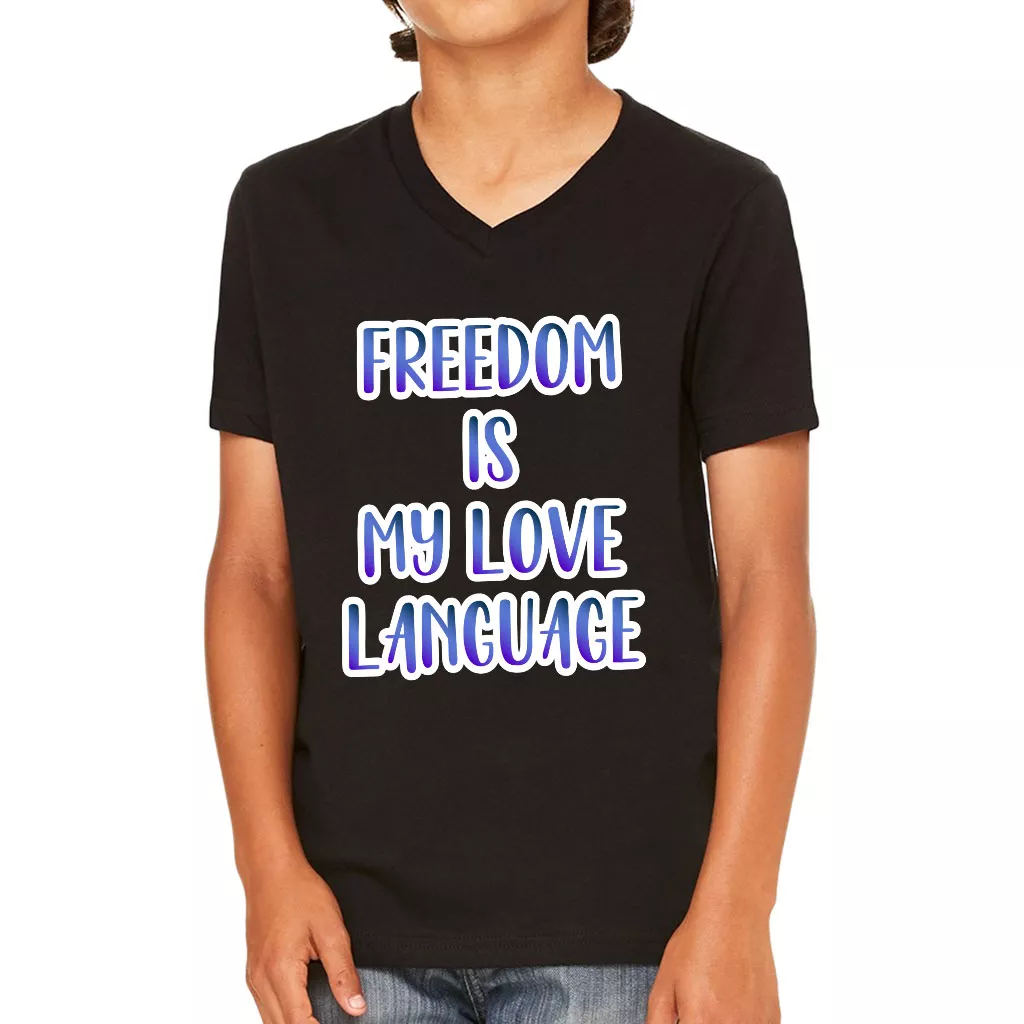 Freedom Kids’ V-Neck T-Shirt – Cute Graphic T-Shirt – Cool Design V-Neck Tee