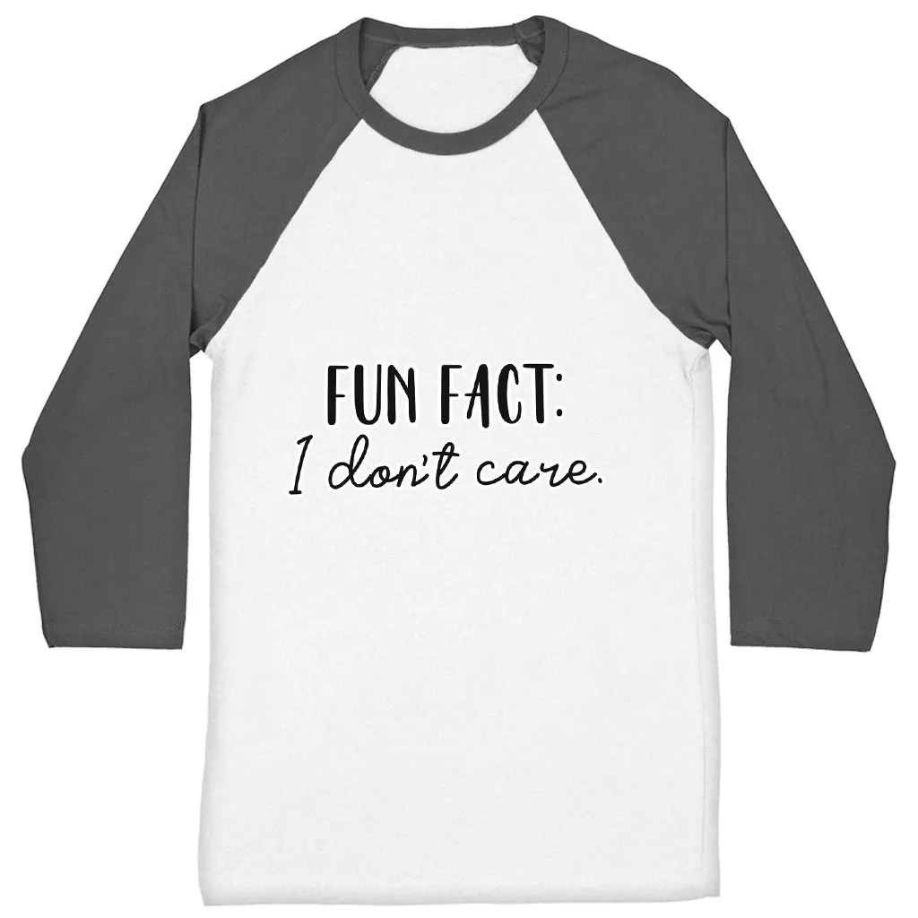 Fun Fact I Don’t Care Baseball T-Shirt – Cool T-Shirt – Trendy Baseball Tee