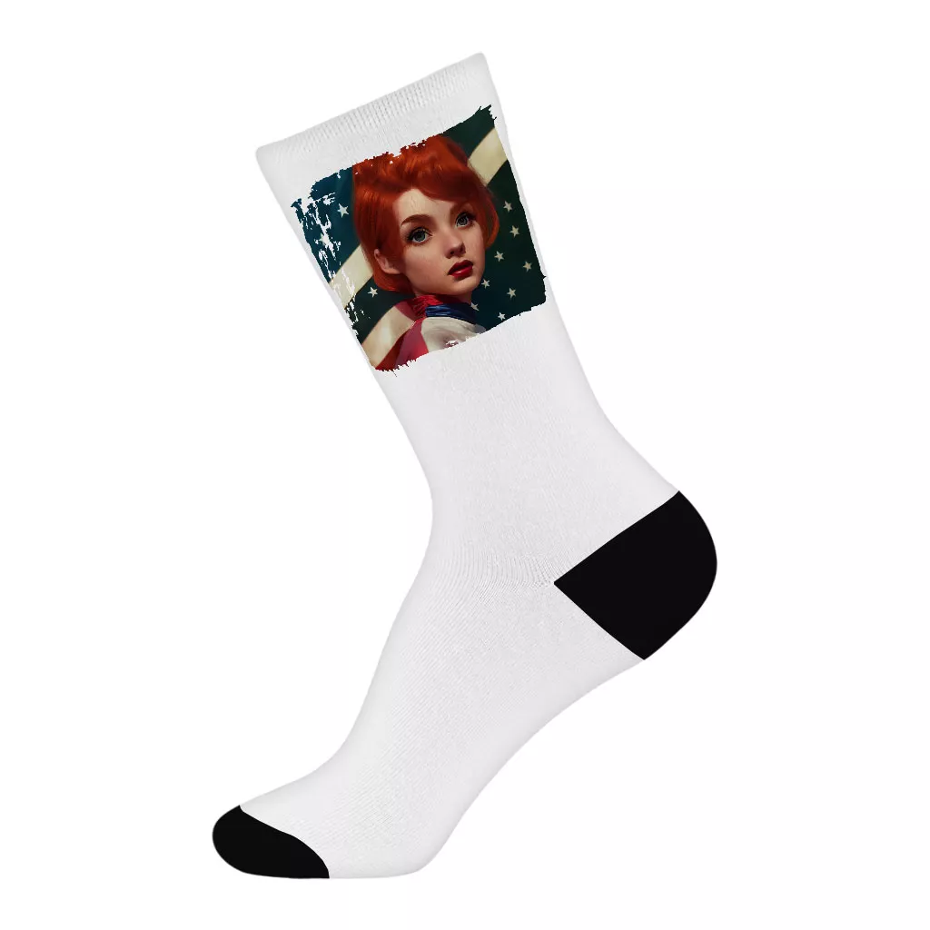 Cushioned foot bottom makes Girl Red Hair American Flag Socks a sure bet for everyday wear, from work, play, gym, sports, and beyond. These socks are designed to be all-season. This product is made breathable for when it’s warm but thick enough for when it’s cold during the winter.