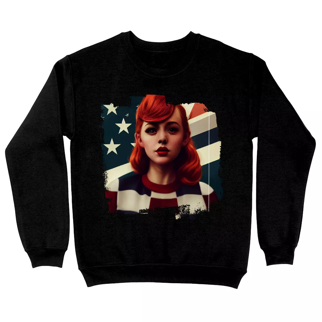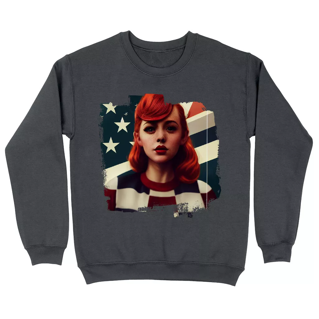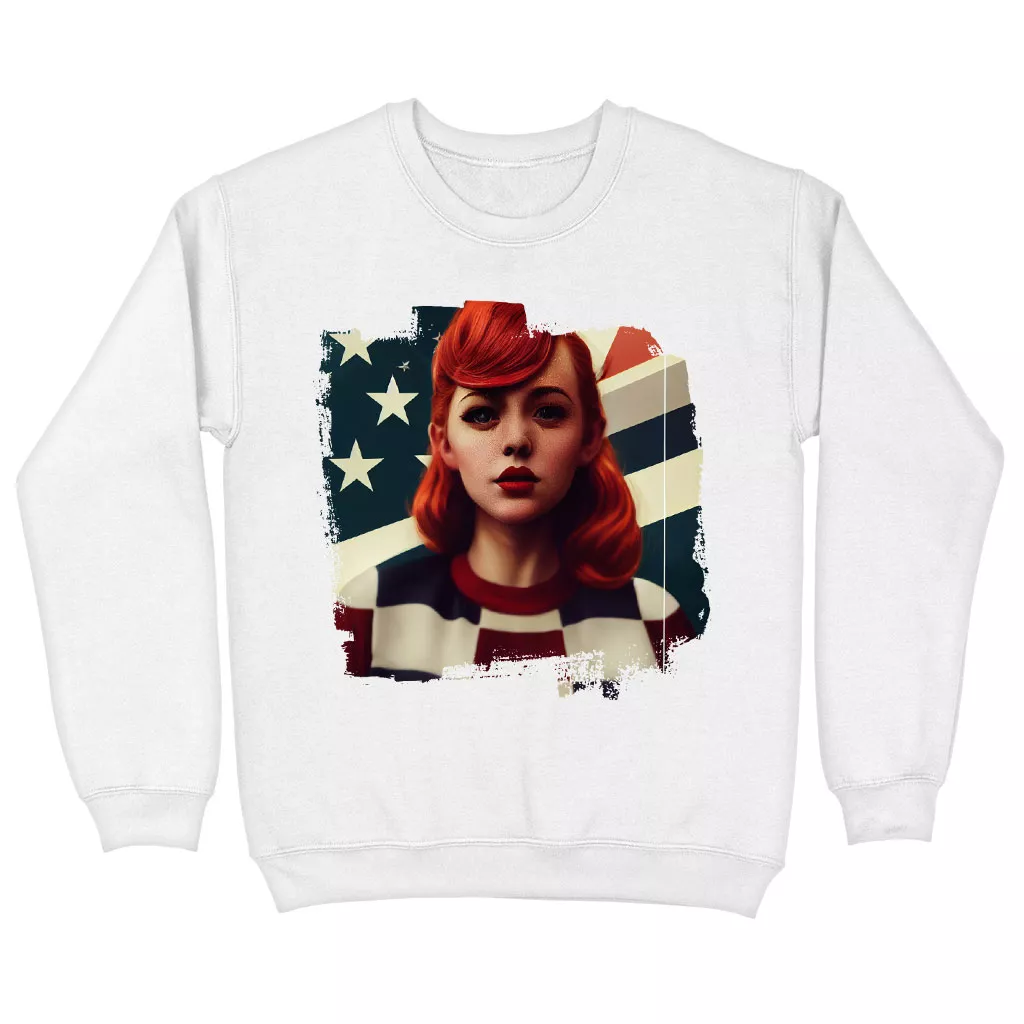 Girl Red Hair American Sweatshirt – Patriotic Crewneck Sweatshirt – Art Sweatshirt