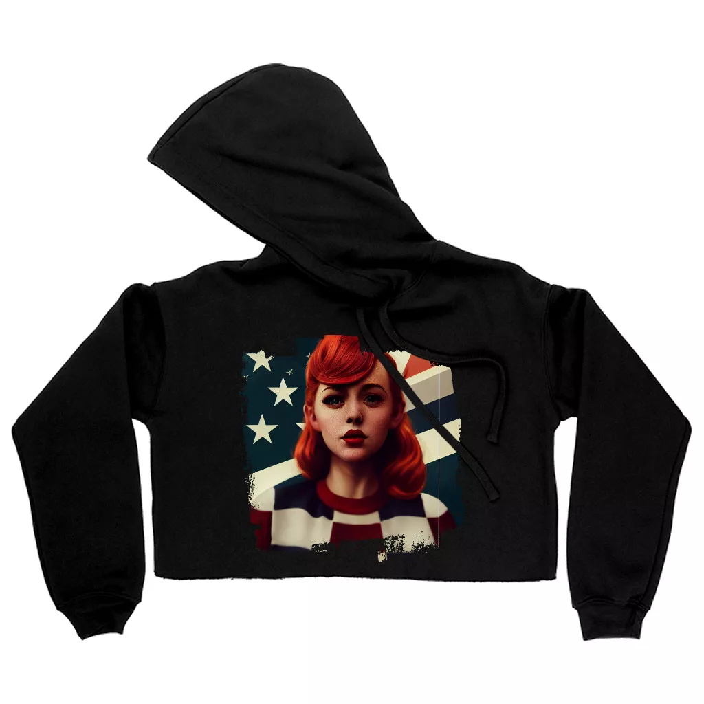 Girl Red Hair American Women’s Cropped Fleece Hoodie is proudly made with 7x less water than average manufacturers, in recycle-friendly facilities that also guarantee zero sweatshop conditions. Patriotic is designed and printed in California.