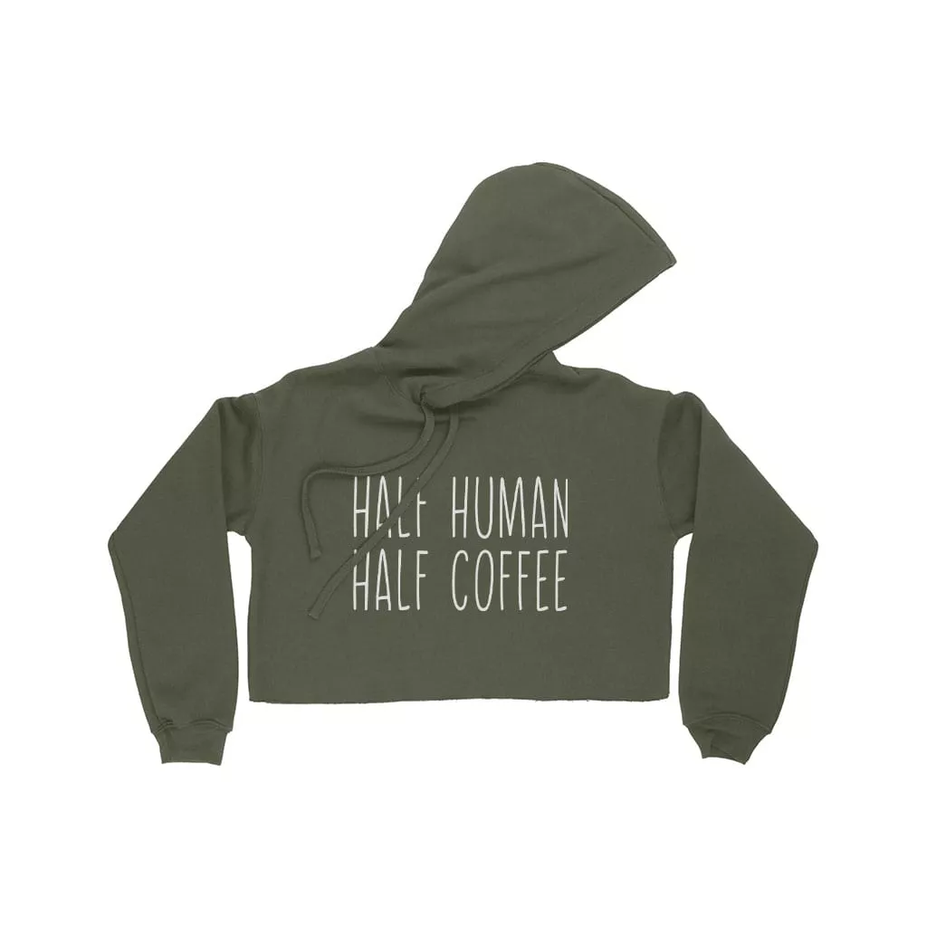 Half Human Half Coffee Women’s Cropped Fleece Hoodie