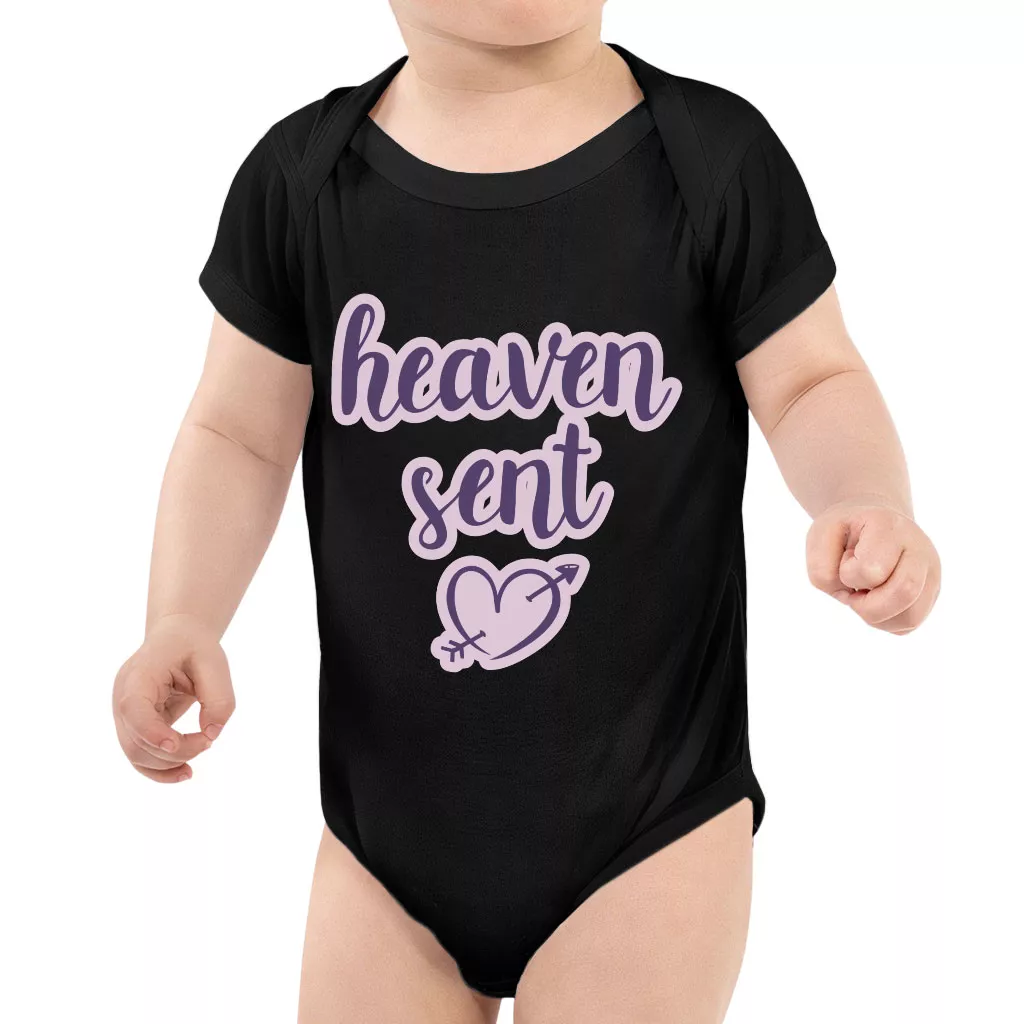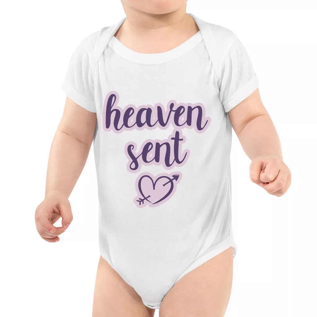 Heaven Sent Baby Jersey Onesie – Angel Baby Bodysuit – Heart Print Baby One-Piece
