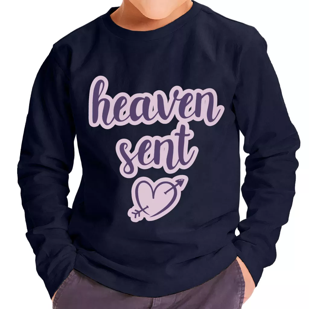 Our precious styles are made with high quality and care, delicate clothing, and underwear so that your children get the comfort they deserve. Heaven Sent Toddler Long Sleeve T-Shirt comes in a variety of color combinations.