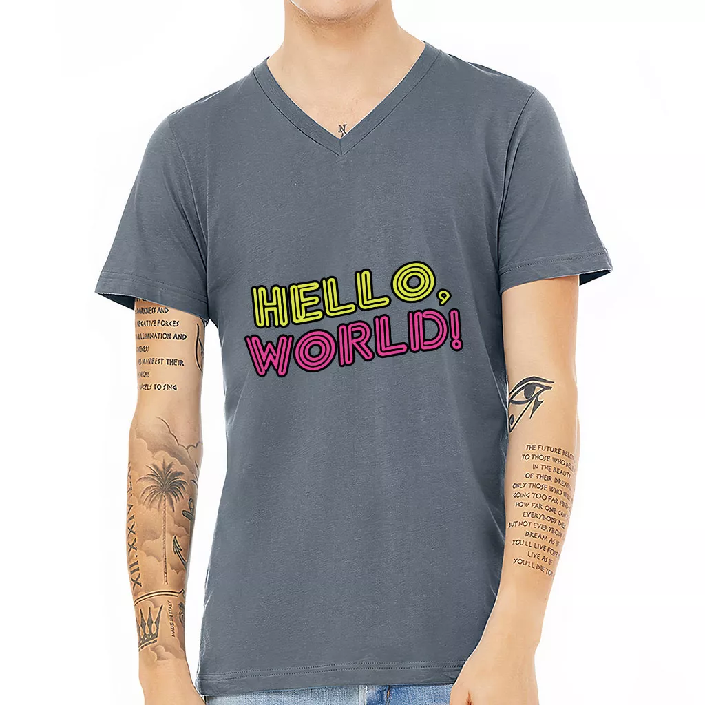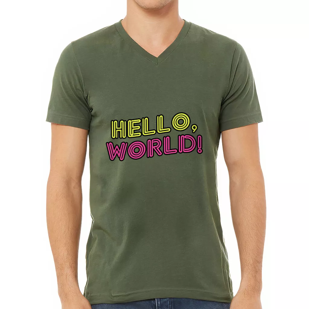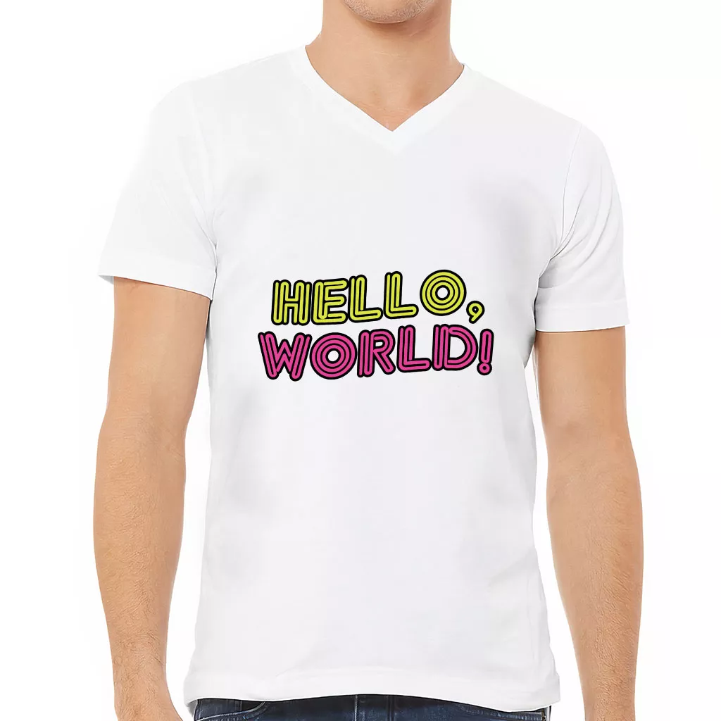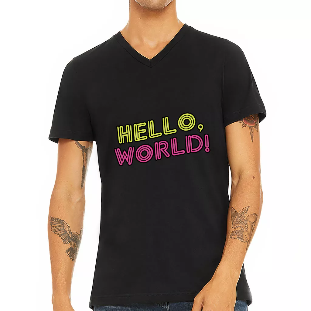 Hello World V-Neck T-Shirt – Cool Design T-Shirt – Trendy V-Neck Tee