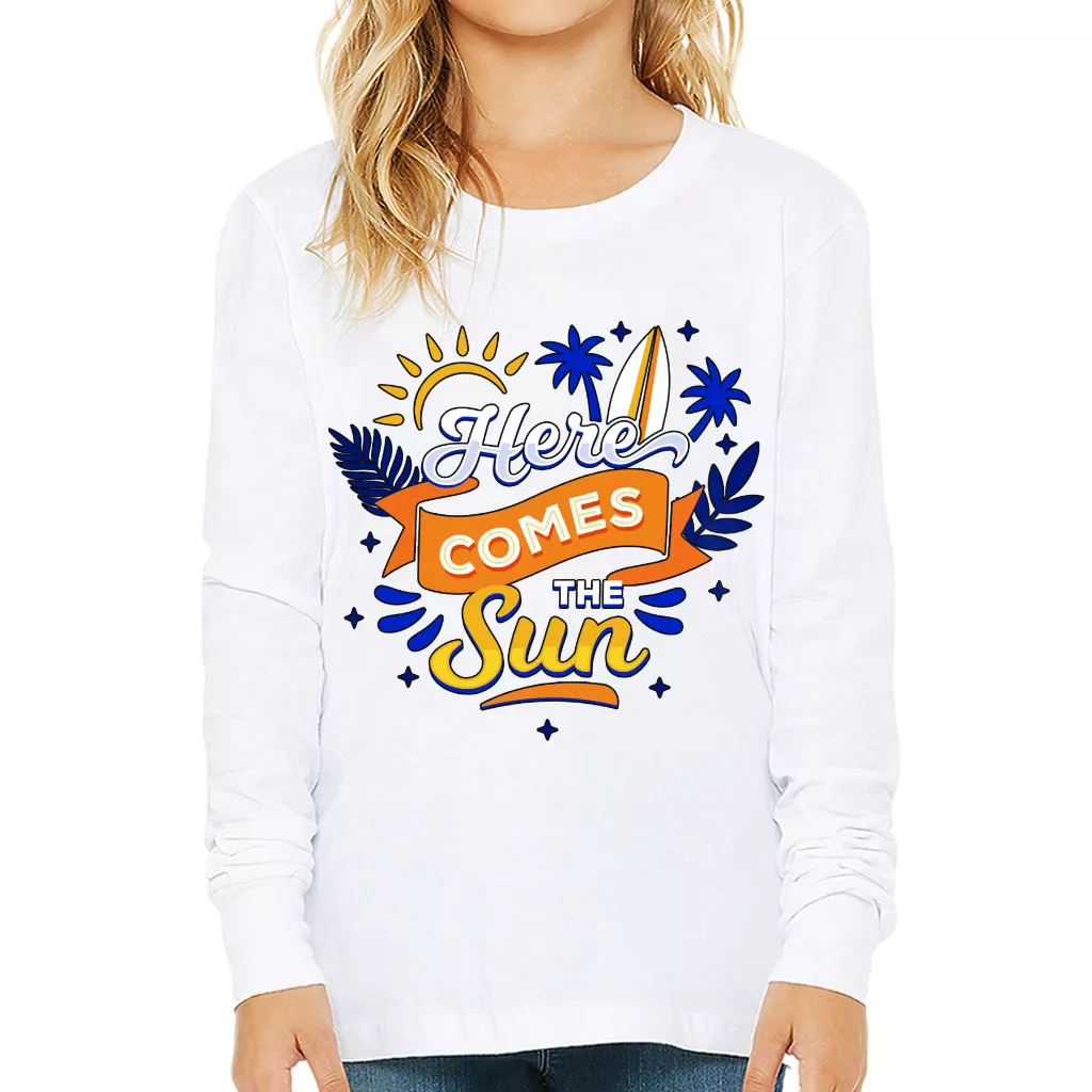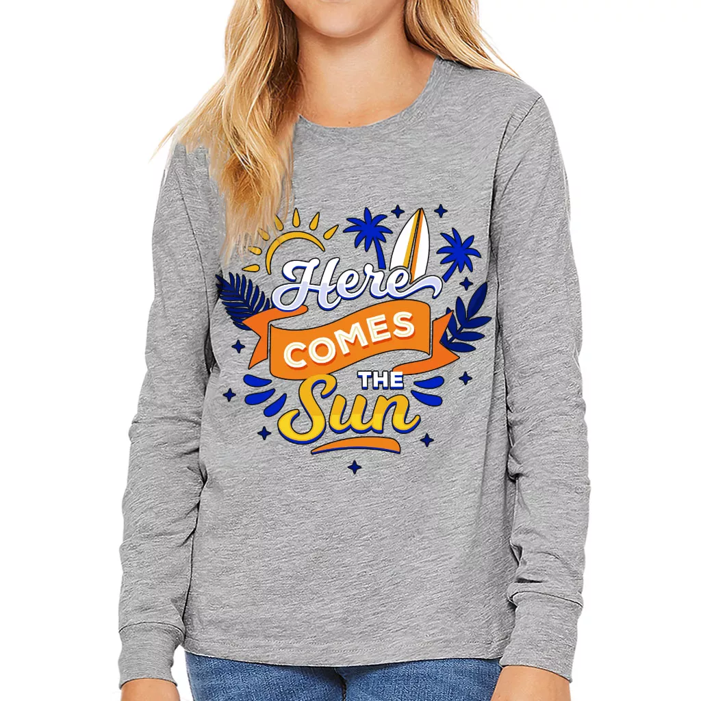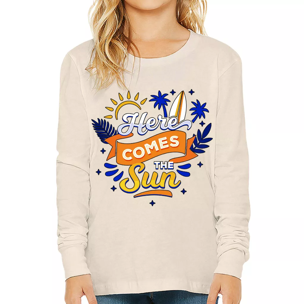 Here Comes the Sun Kids’ Long Sleeve T-Shirt – Cute T-Shirt – Themed Long Sleeve Tee