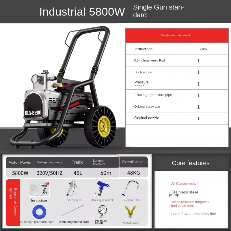 Whether you’re tackling a large-scale commercial project or a personal DIY endeavor, this paint sprayer is your perfect companion. Its high power and extended nozzle reach make it ideal for covering large areas quickly, while its precision nozzle is perfect for detailed work. From interior walls to outdoor structures, this tool adapts to a wide range of painting tasks.
