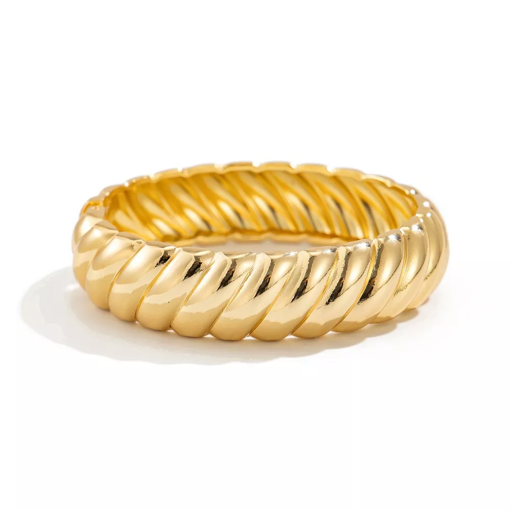 Hip-Hop Retro Metal Bangle – Thick Thread Texture Gold & Silver Bracelet