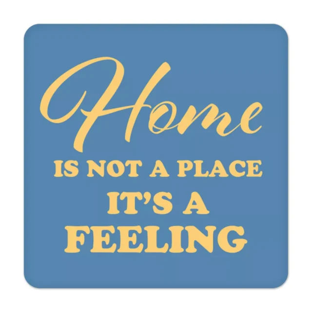 Home Is Not a Place It’s a Feeling Square Coaster 4-Piece Set – Retro Print Coasters for Drinks – Inspirational Quote Coffee Tea Mug Coasters
