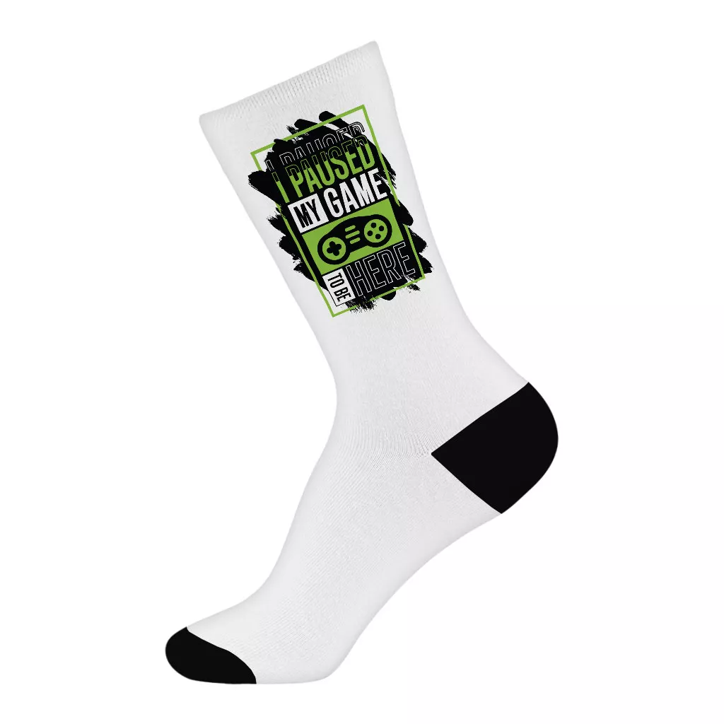 I Paused My Game to Be Here Socks – Themed Novelty Socks – Cool Design Crew Socks