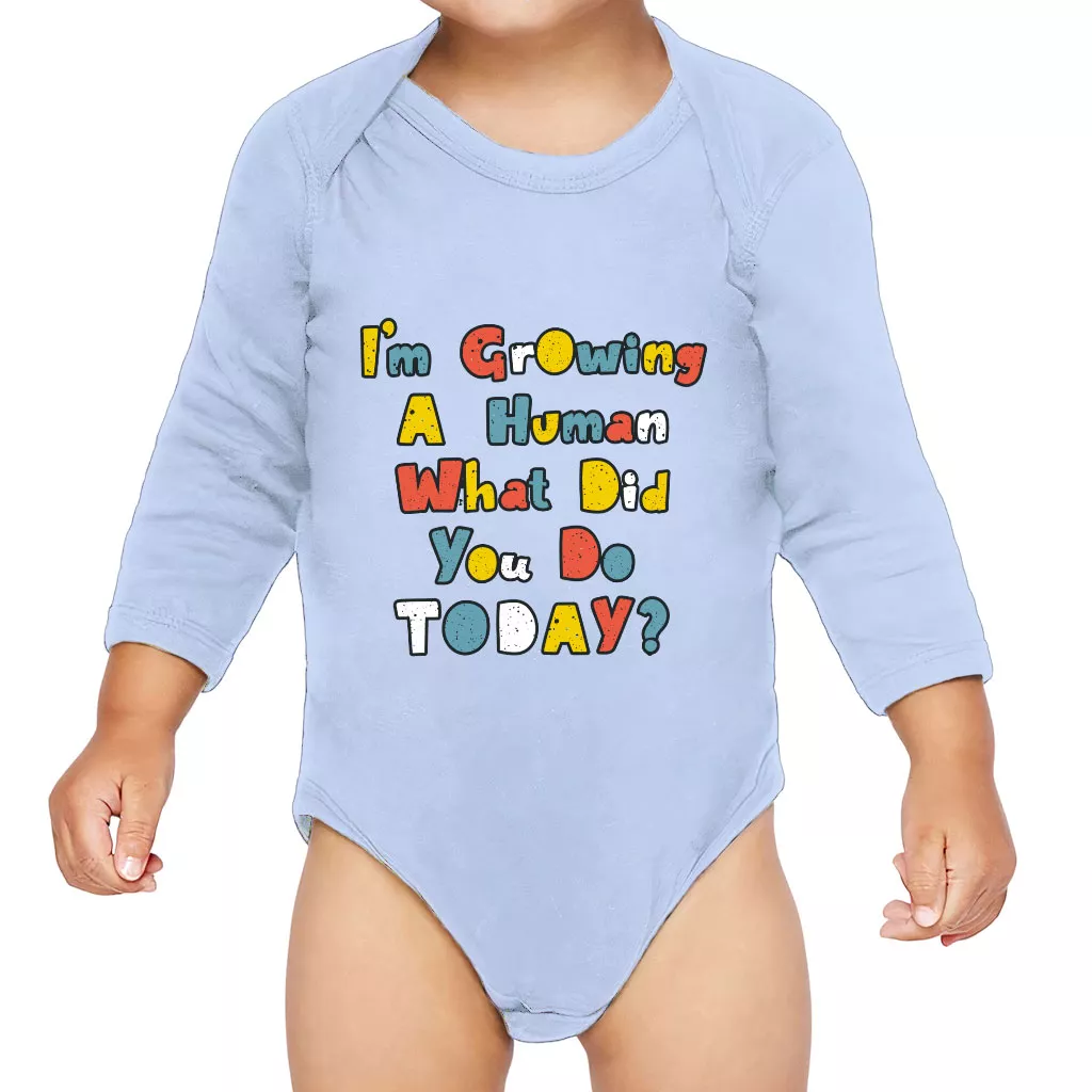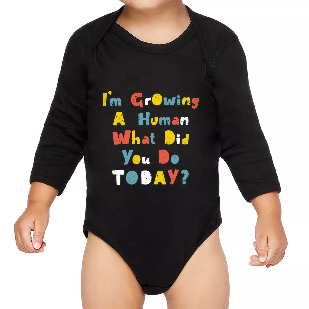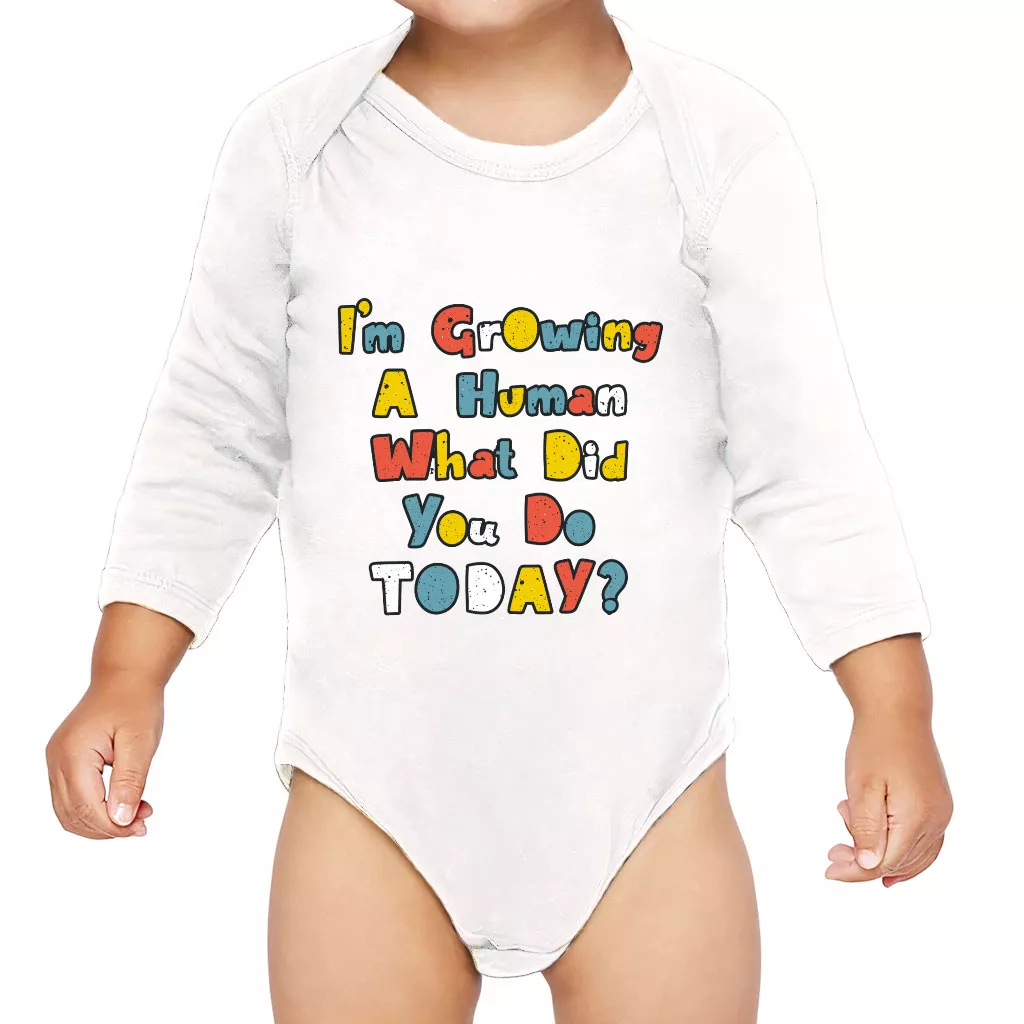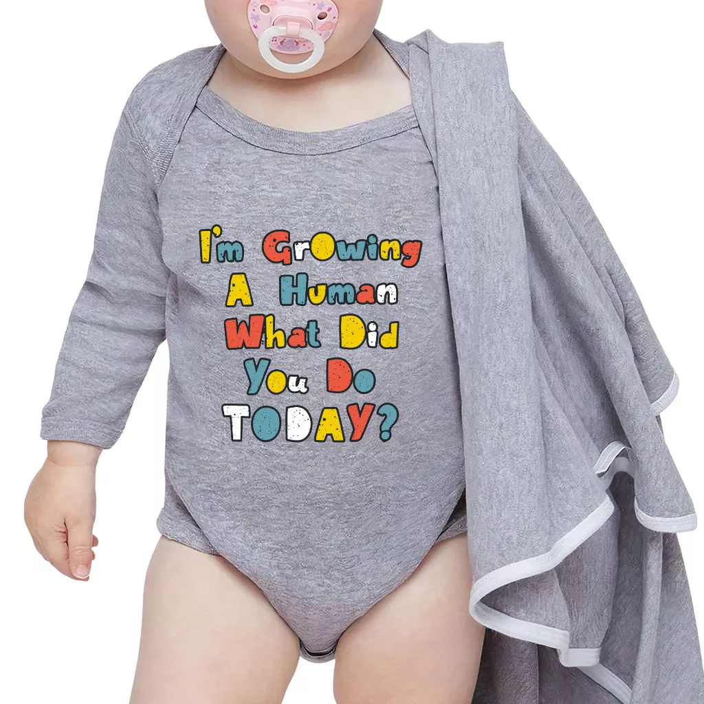 I’m Growing a Human Baby Long Sleeve Onesie is made of high-quality fabric which makes it soft on the skin, breathable, lightweight, and comfortable to wear. Made of high-end materials, with sturdy stitching and non-fade colors, these bodysuits are extra-durable.