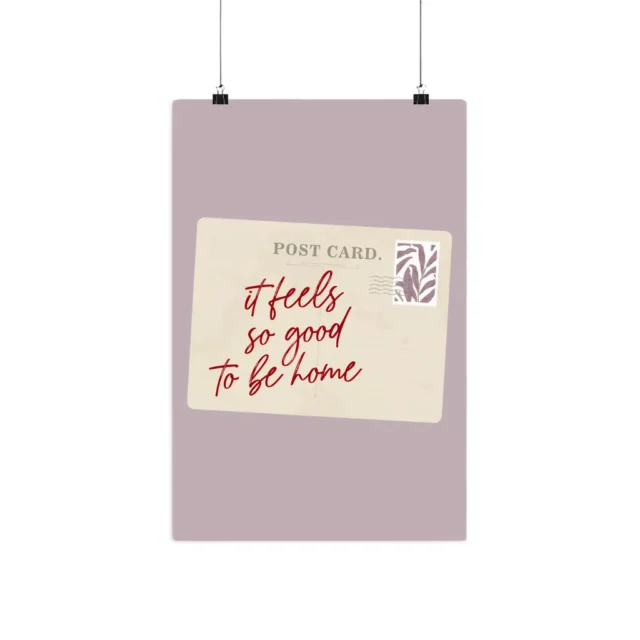 Elevate your space with It Feels So Good to Be Home Matte Poster! This unique wall art is made with pigmented archival inks, providing superior fade resistance and permanence to ensure a stunning graphic for years to come. Its matte finish adds modern appeal and a lightweight alternative to framed art. Whether you’re decorating an office, living room, cafĂ© or gallery space, Vintage Postcard Wall Art Print is sure to give your walls a one-of-a-kind touch that won’t go unnoticed. Make an eye-catching statement today with Handwriting Print Home Decor.Â