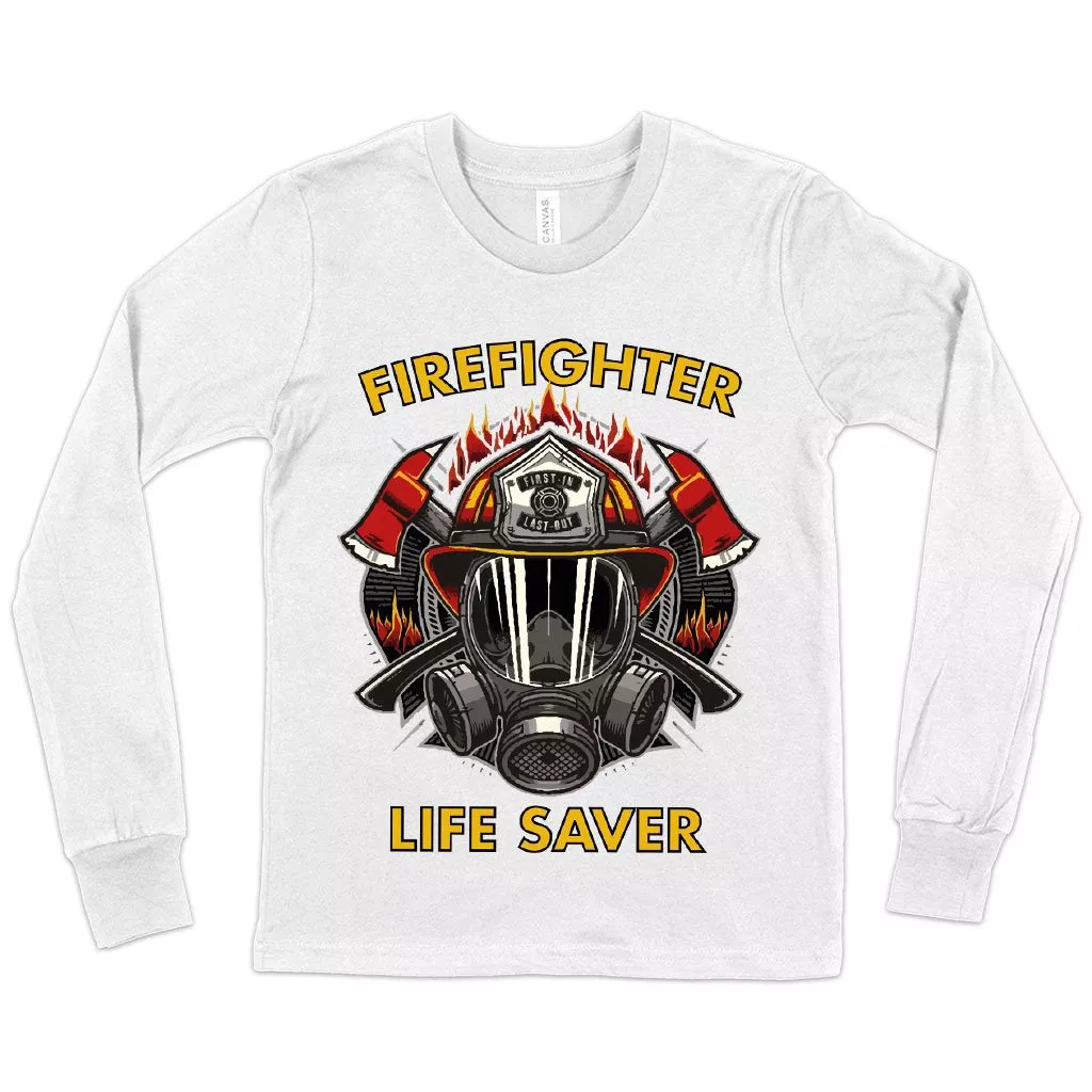 Kids’ Firefighter Life Saver Long Sleeve T-Shirt – Firefighter Design T-Shirt – Firefighter Apparel