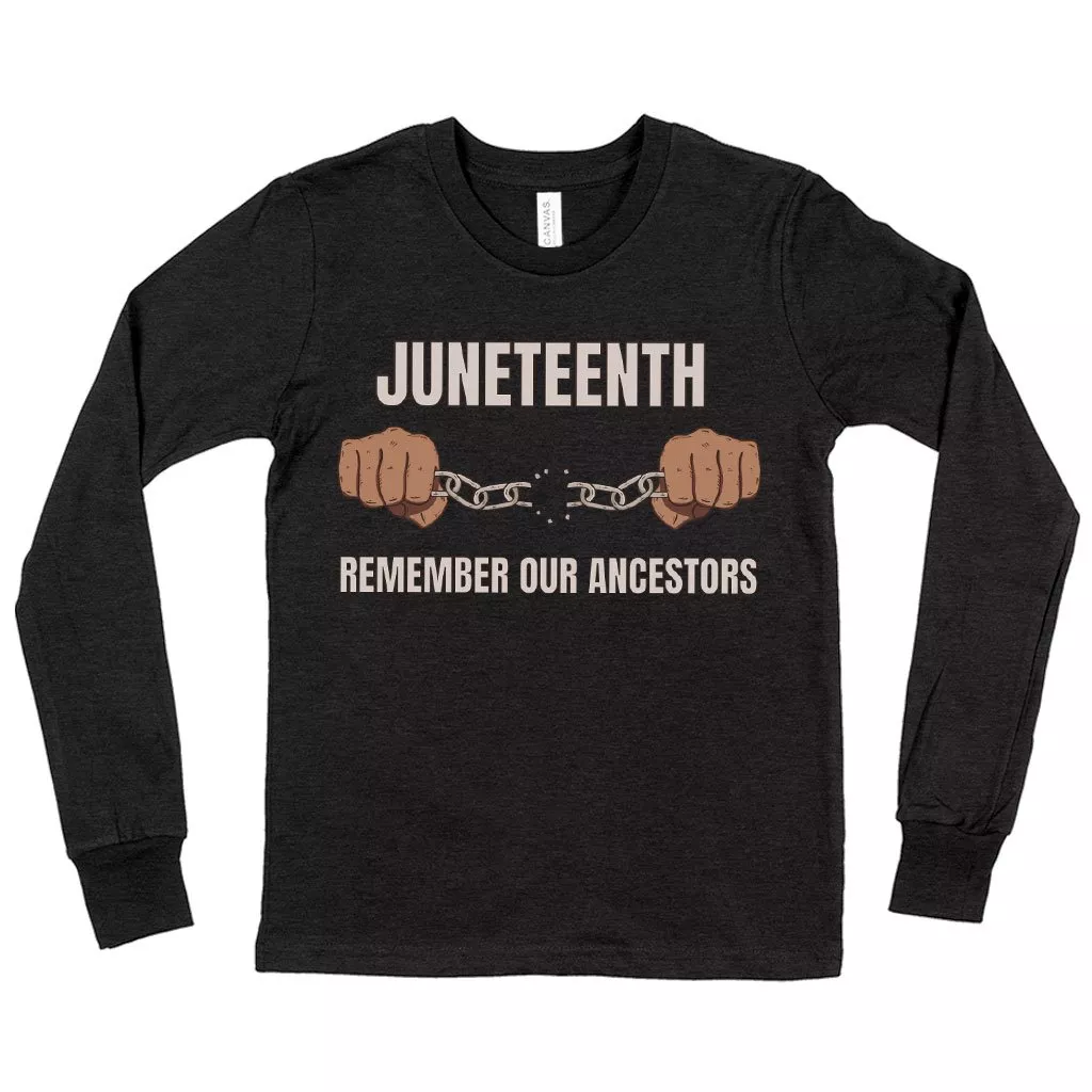 Kids’ Juneteenth Remember Our Ancestors Long Sleeve T-Shirt – African American Juneteenth T-Shirts