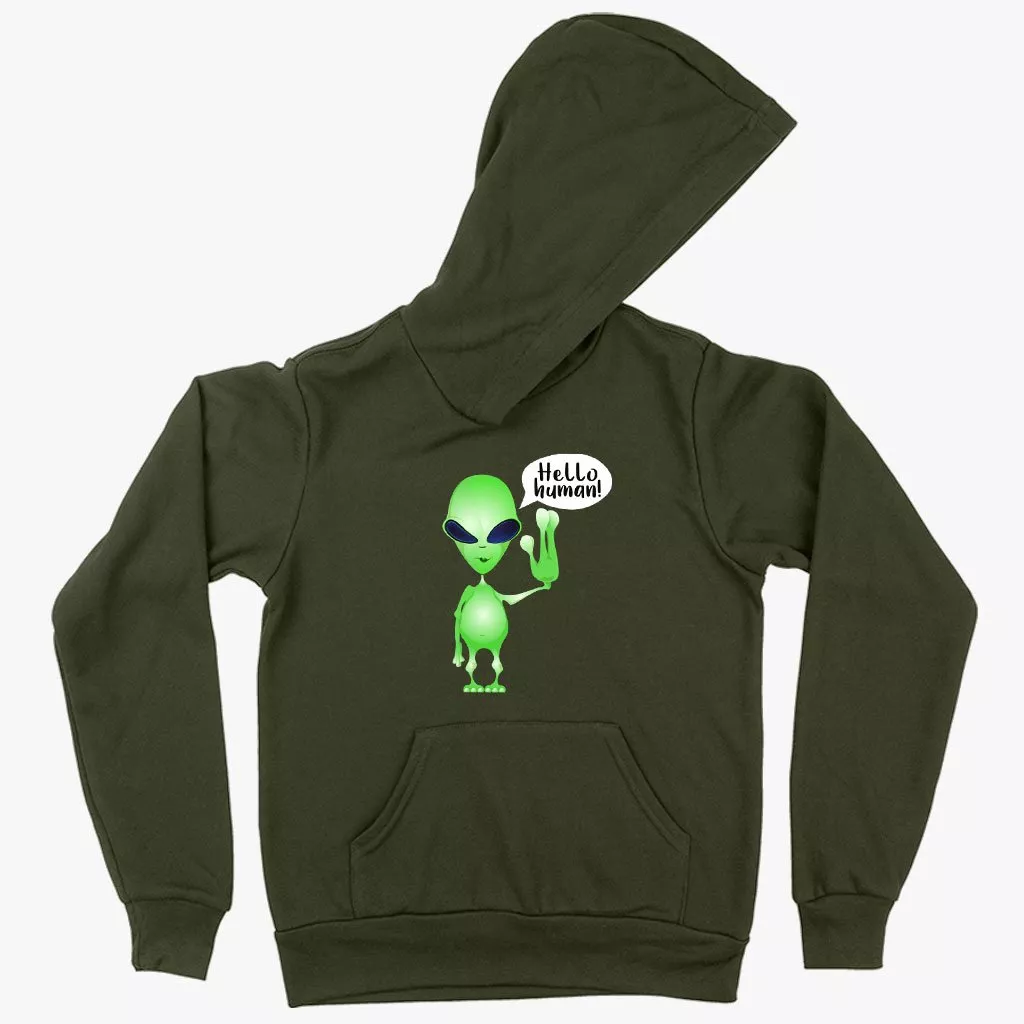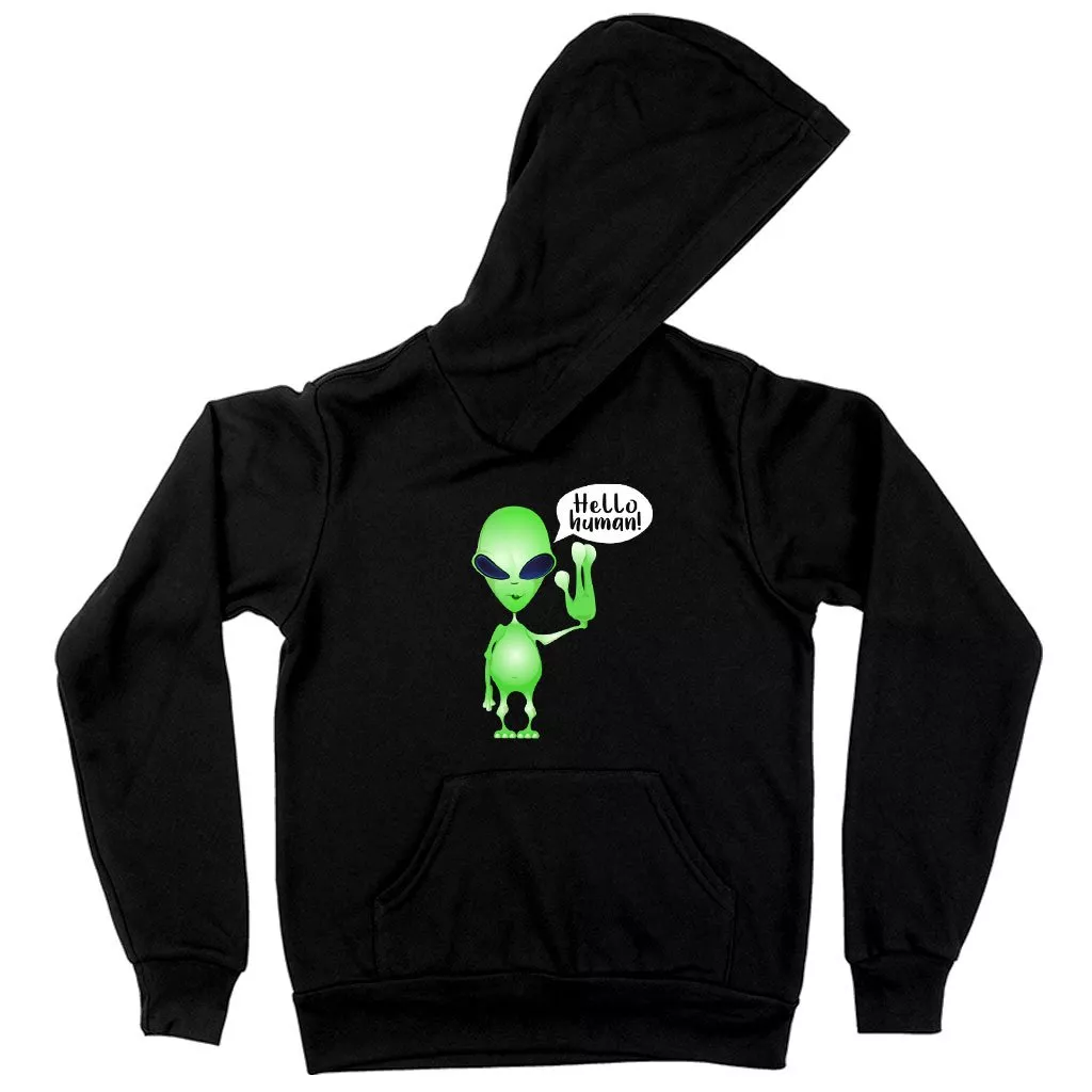Kids’ Sponge Fleece Hello Human Hoodie – Alien Hoodie