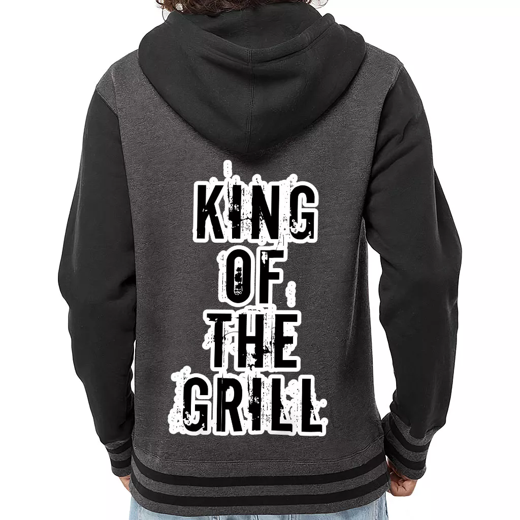 An essential closet staple, King Of the Grill Varsity Hoodie is a go-to classic for hiking, training, or just kicking back. Pair it with your favorite shorts, athletic pants, jeans, or any pants you like.