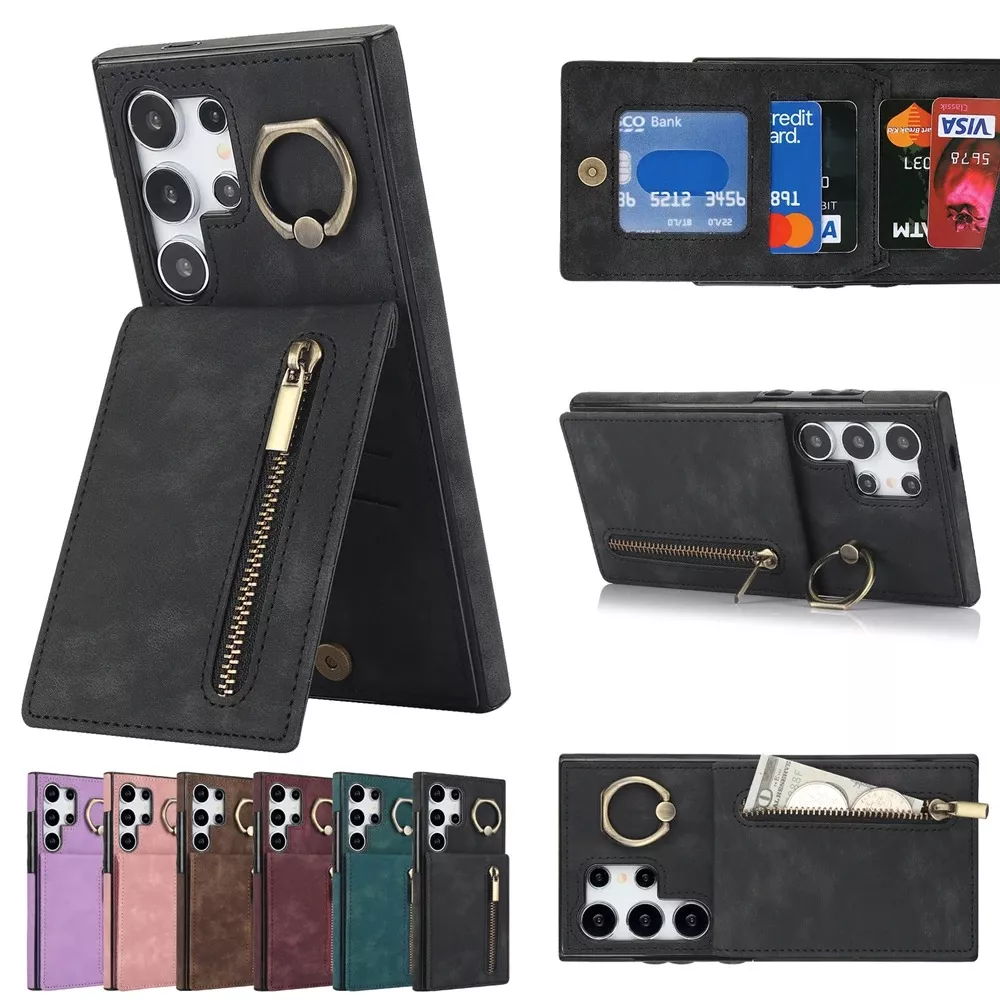 Combine style, functionality, and protection with this premium leather zipper wallet case for the Samsung Galaxy S24 Ultra 5G. Designed to meet the demands of your busy lifestyle, this case features a card slot, storage compartment, and a 360-degree ring kickstand. Its shockproof design keeps your phone safe, while the elegant leather finish adds a touch of sophistication to your everyday carry.