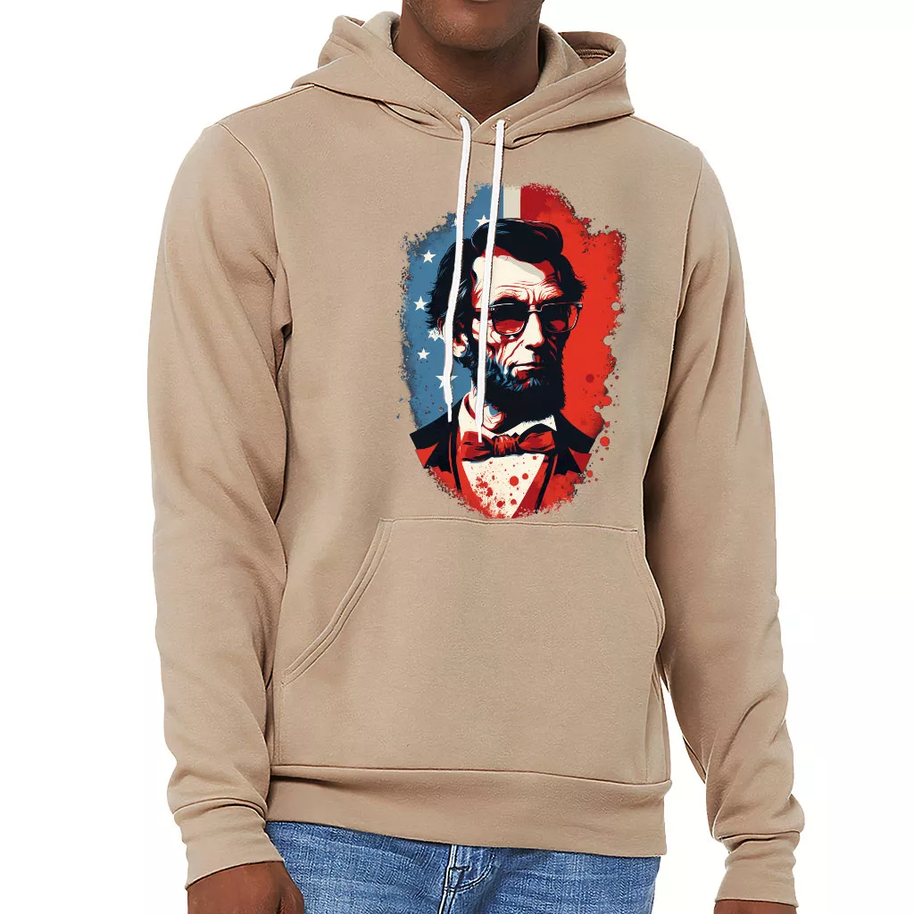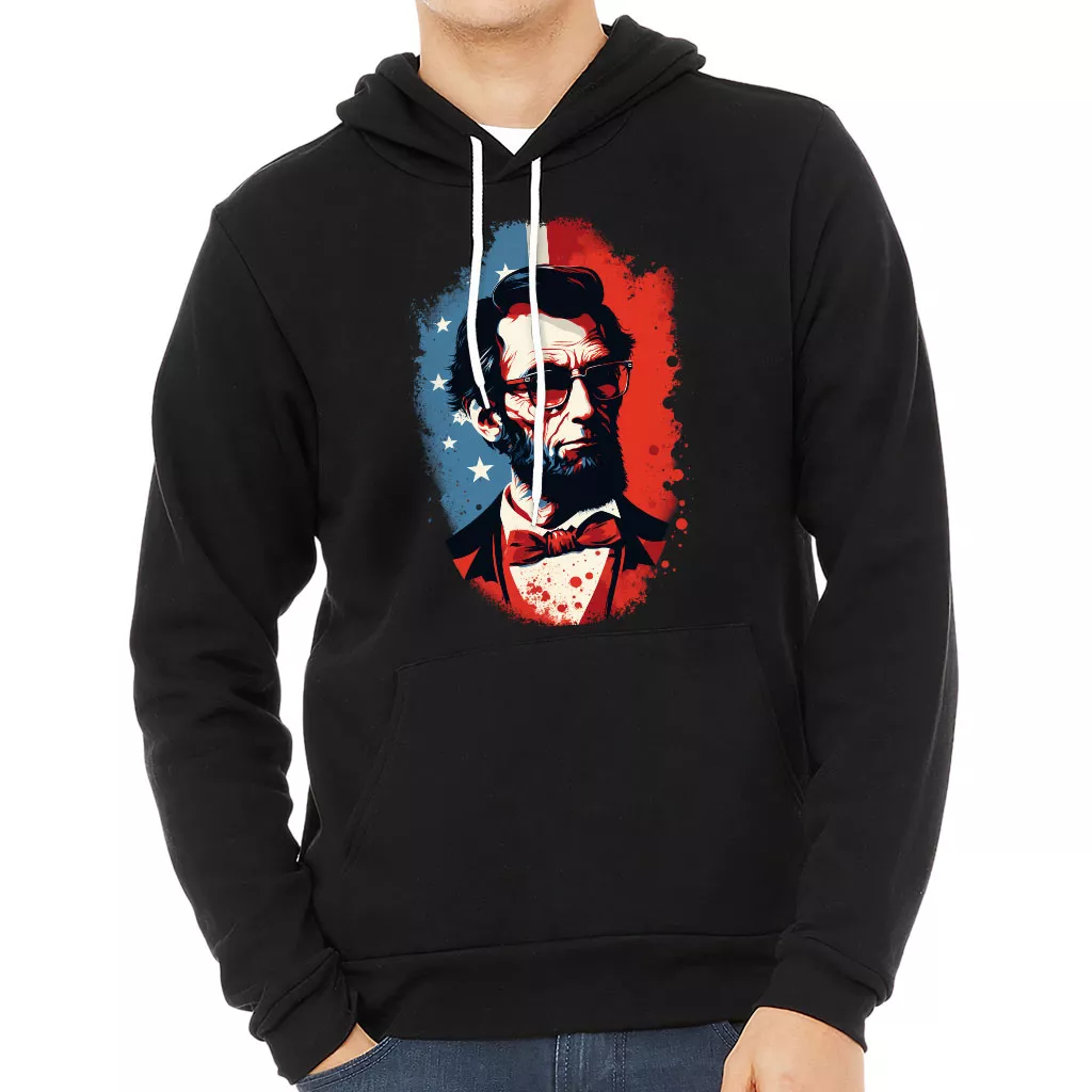 Lincoln Sponge Fleece Hoodie – Patriotic Hoodie – Themed Hooded Sweatshirt