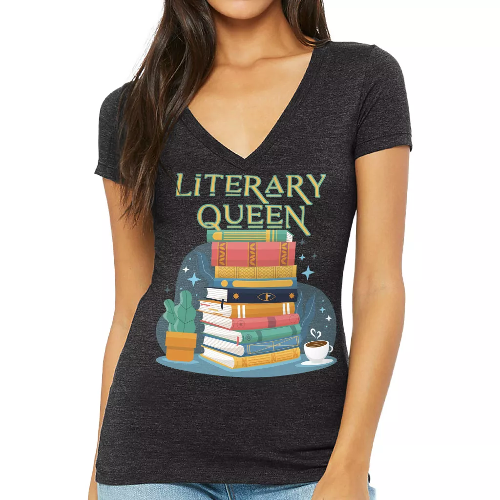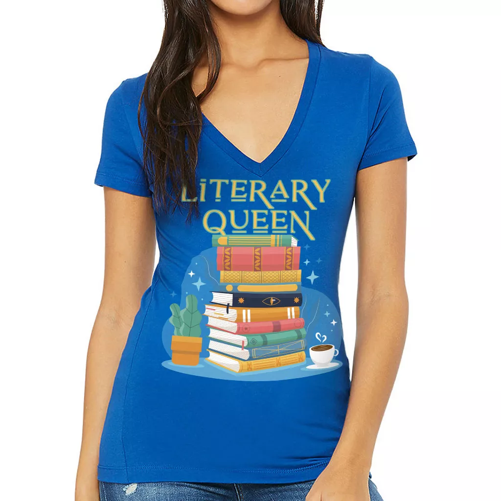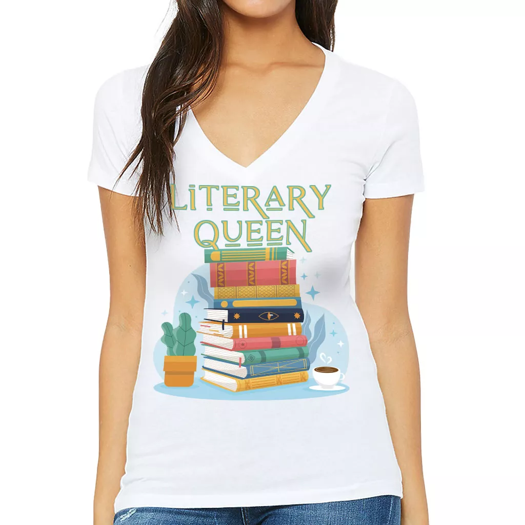 Literary Women’s V-Neck T-Shirt – Book Themed V-Neck Tee – Printed T-Shirt