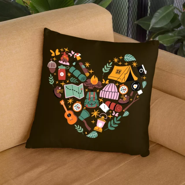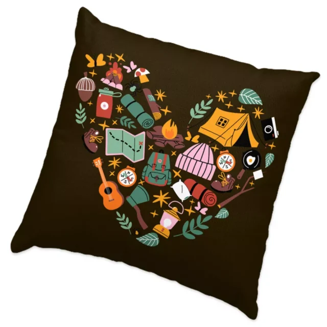 Love Camping Pillowcase – Cute Heart Super Soft and Cozy Pillow Case – Camp Fire Decorative Square Throw Pillow Covers
