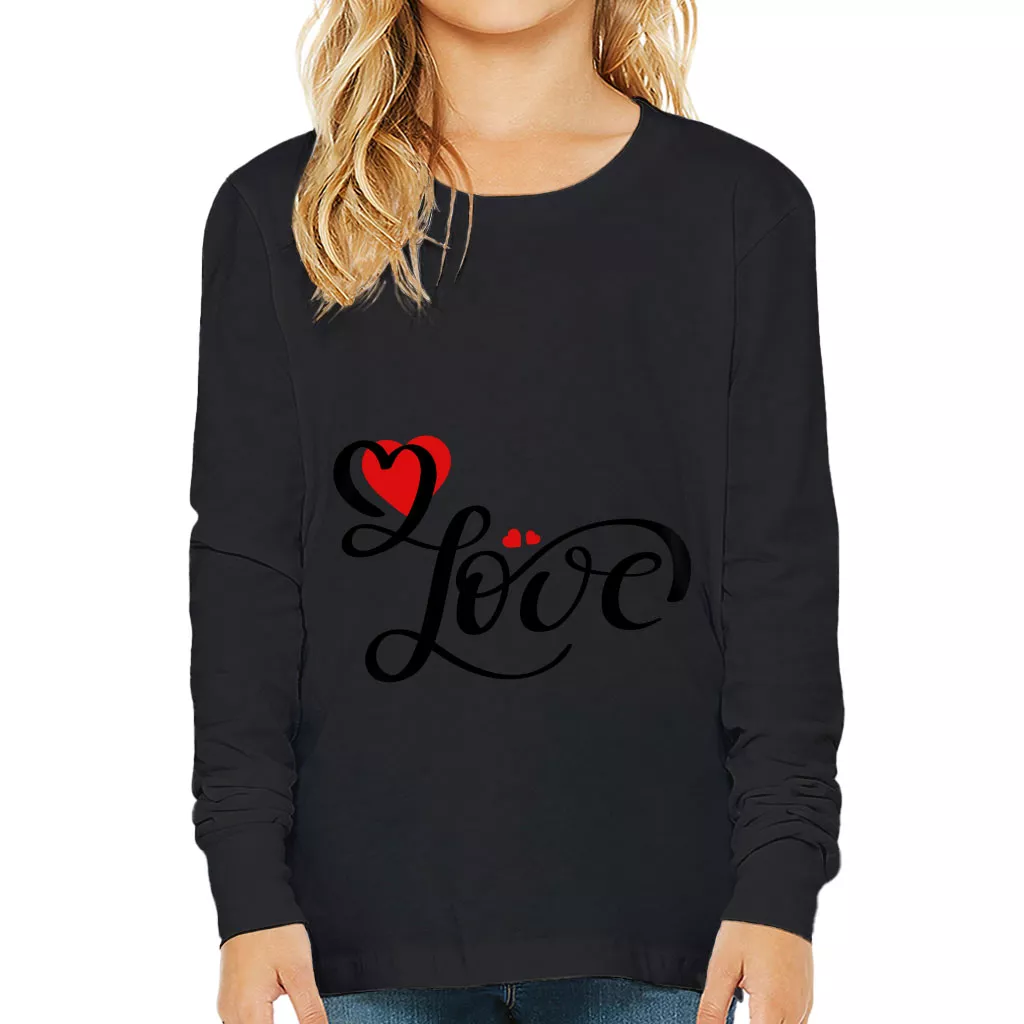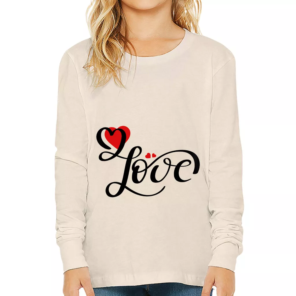 Love Kids’ Long Sleeve T-Shirt – Heart Print T-Shirt – Cute Design Long Sleeve Tee