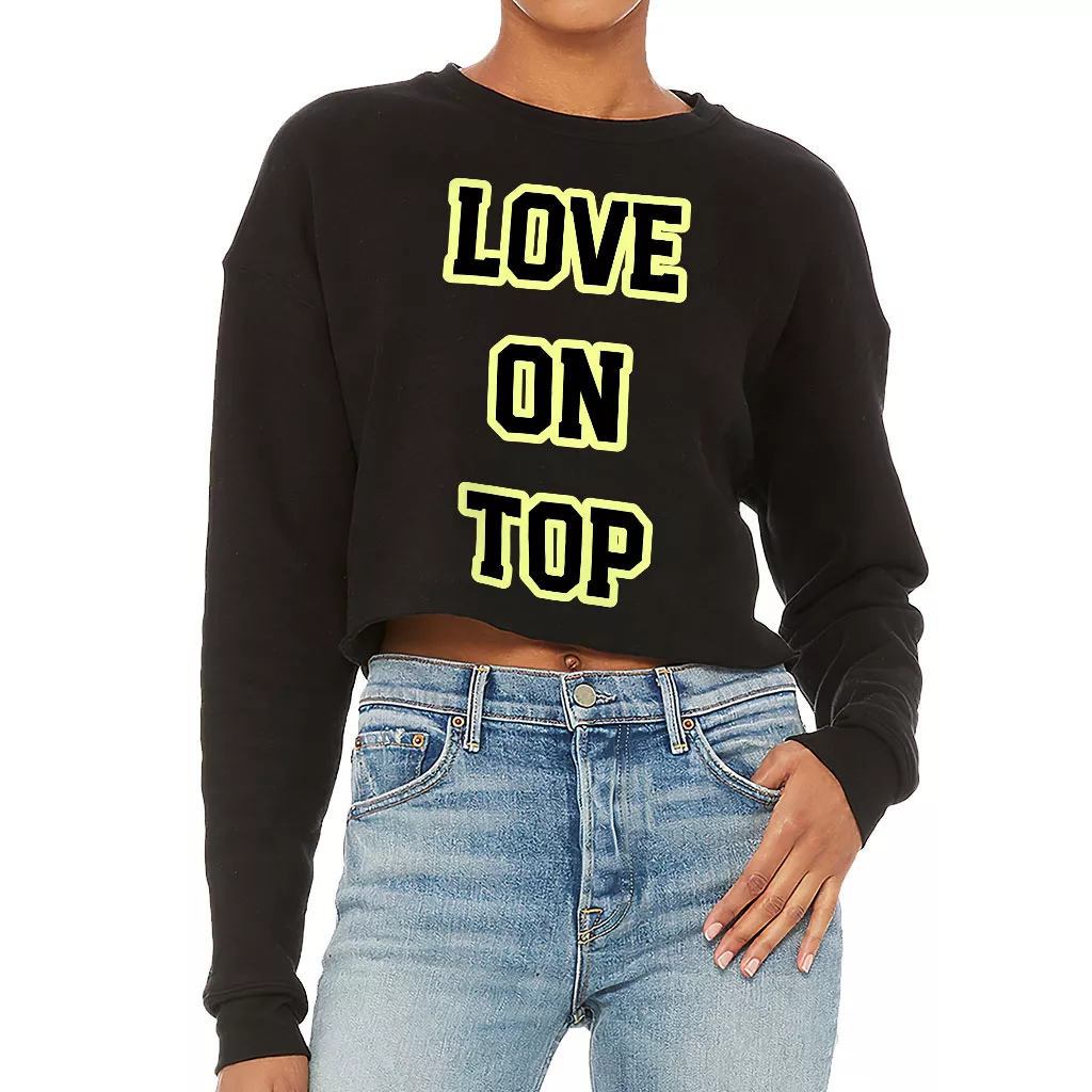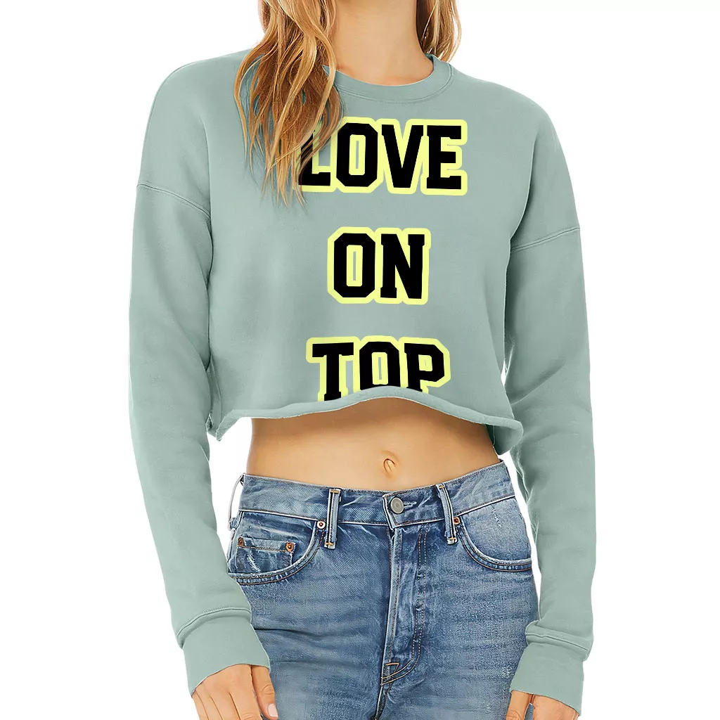 Love Print Cropped Sweatshirt – Cute Women’s Sweatshirt – Best Print Crop Crew Sweatshirt