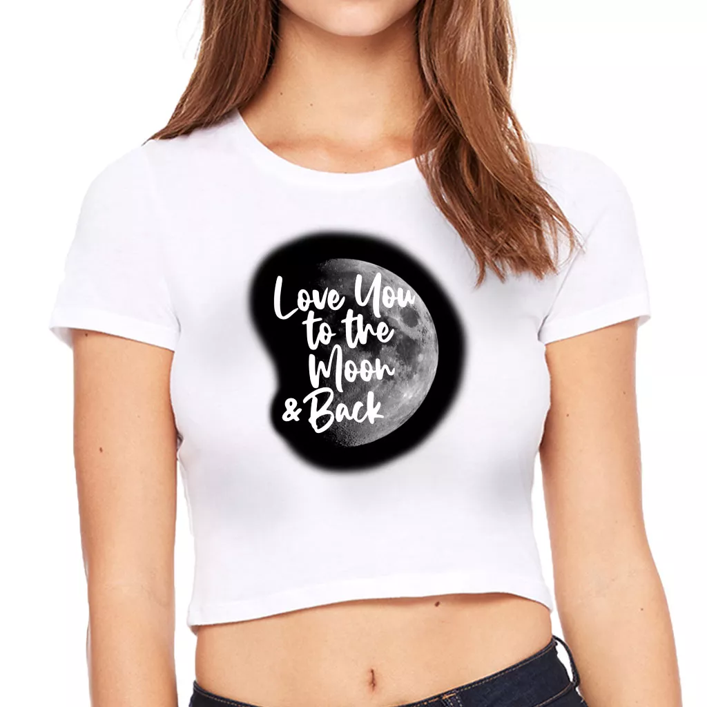 Love You to the Moon and Back Women’s Cropped T-Shirt – Moon Graphic Crop Top – Cool Trendy Cropped Tee
