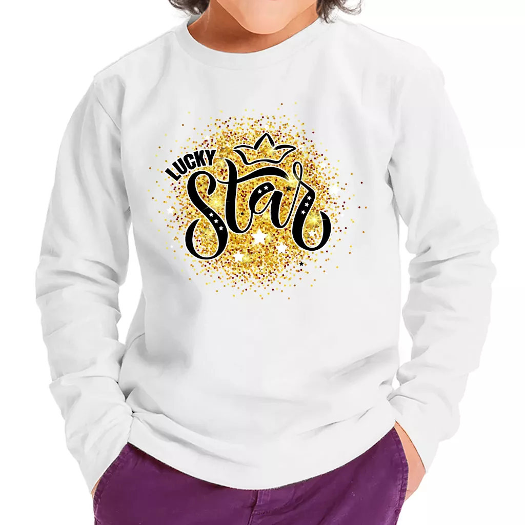 Our precious styles are made with high quality and care, delicate clothing, and underwear so that your children get the comfort they deserve. Lucky Star Toddler Long Sleeve T-Shirt comes in a variety of color combinations.