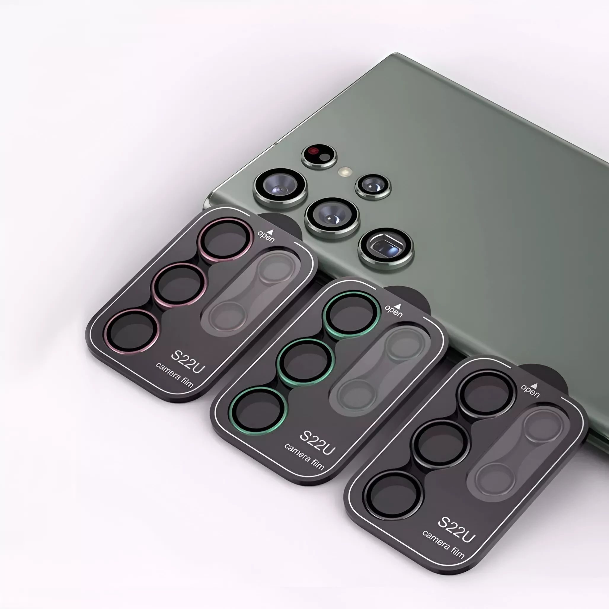 Enhance the durability and style of your Samsung Galaxy S23 or S22 Ultra with the Metal Camera Lens Protector. Designed to offer superior protection, this tempered glass and metal lens ring guard your camera against scratches, dust, and minor impacts. Perfectly tailored for Samsung Galaxy S23 Ultra, S22 Ultra, and S23+ models, it ensures your camera remains flawless while maintaining its premium appearance.