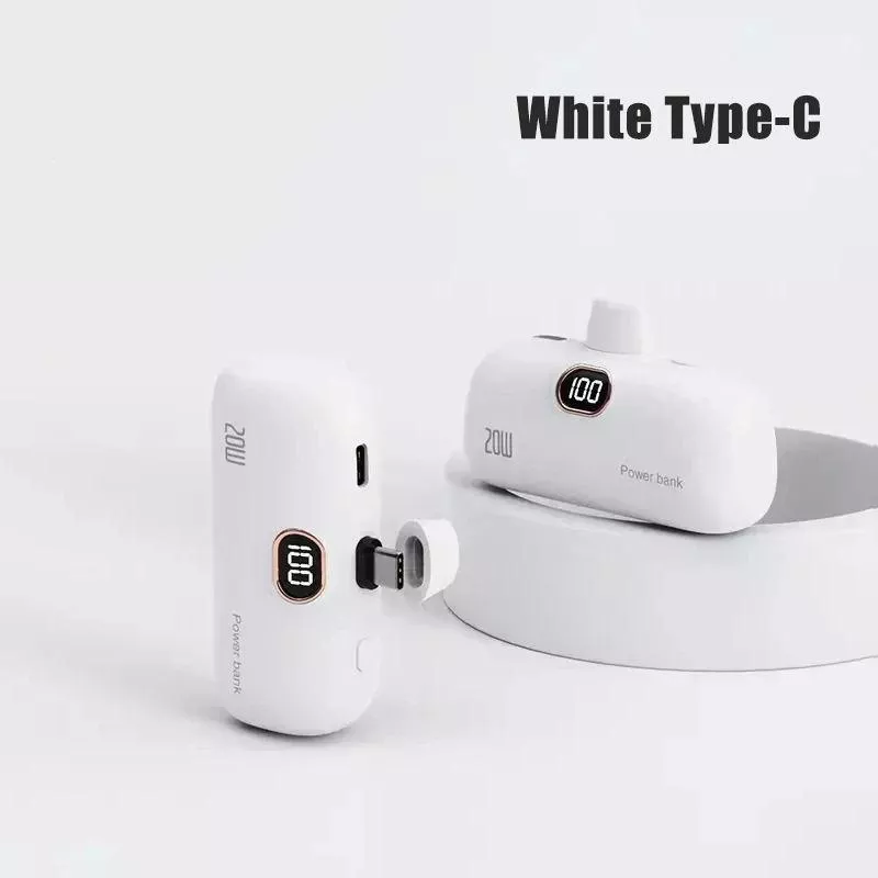 Never run out of battery again with the sleek and powerful Mini 30,000mAh Power Bank. Designed for the modern traveler and always-connected user, this compact charger packs an impressive punch in a lightweight capsule design, offering all-day power for your devices, wherever you are. Equipped with built-in cables, this power bank eliminates the need for extra cords and adapters, keeping your bag or pocket clutter-free while delivering rapid charging performance for your phone, tablet, or other USB-powered devices.