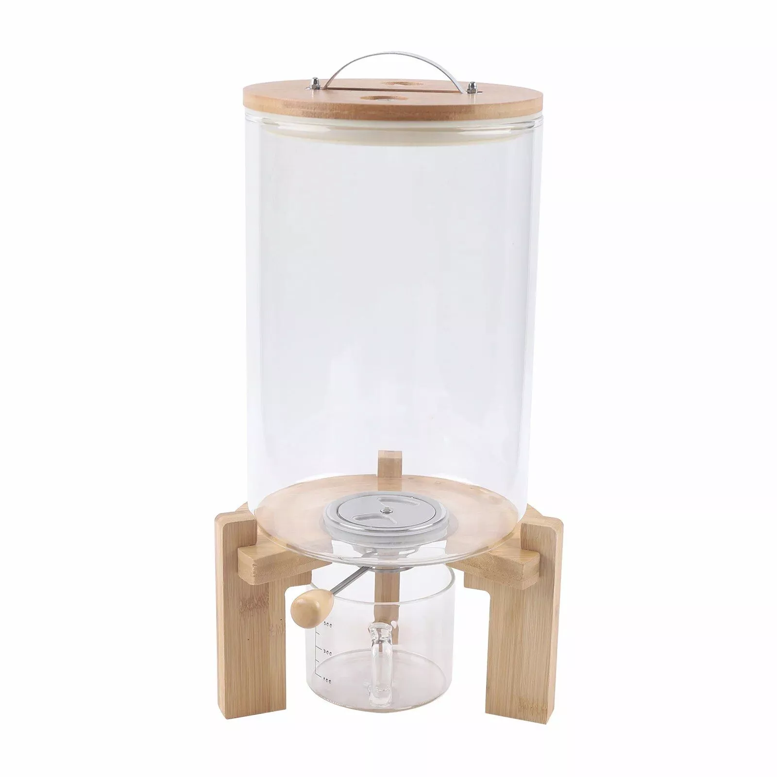 Modern Glass and Bamboo Food Storage Dispenser for Kitchen Organization – 5L/7.5L Capacity