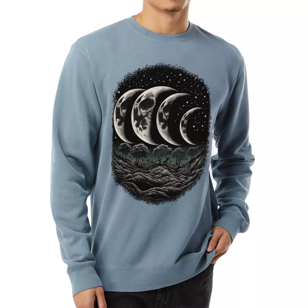 The high-quality fabric of Moon Phase Midweight Sweatshirt makes you feel good and comfortable when wearing it. Crew neck design allows you breathing room and comfort of next level.