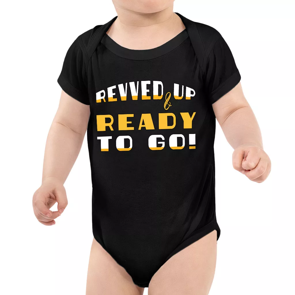 Motivational Baby Jersey Onesie is proudly made with 7x less water than average manufacturers,