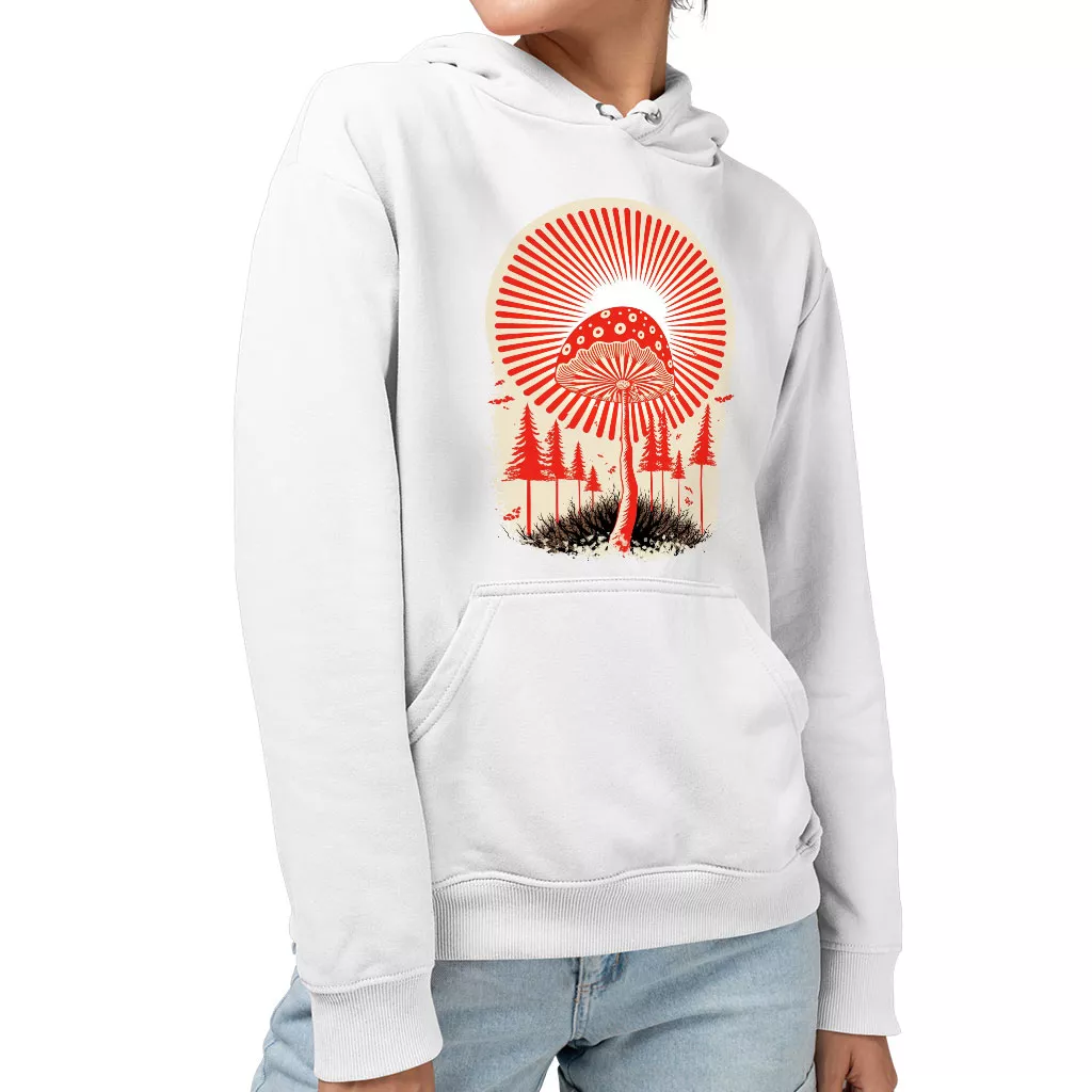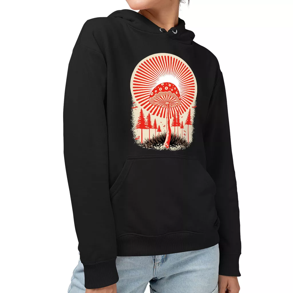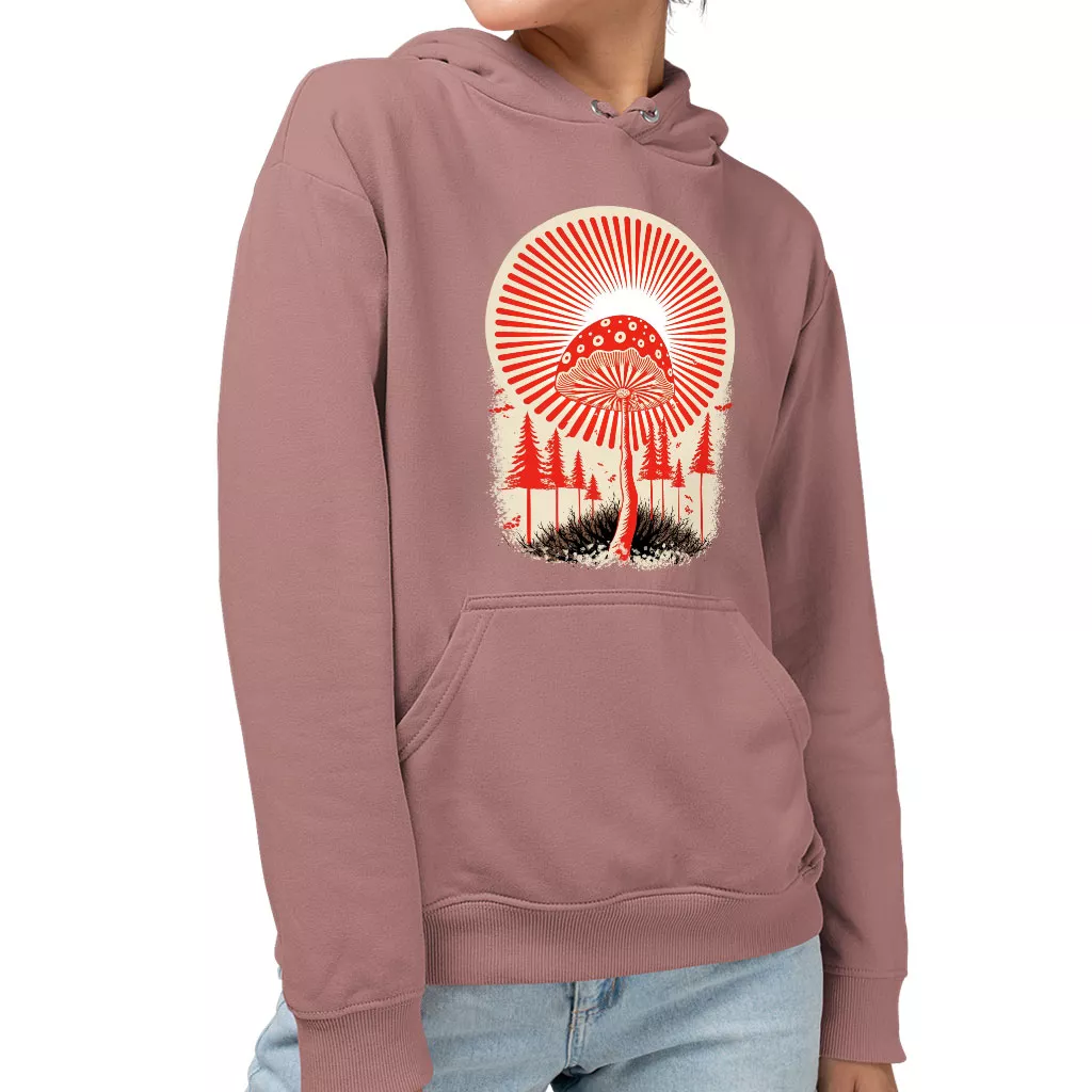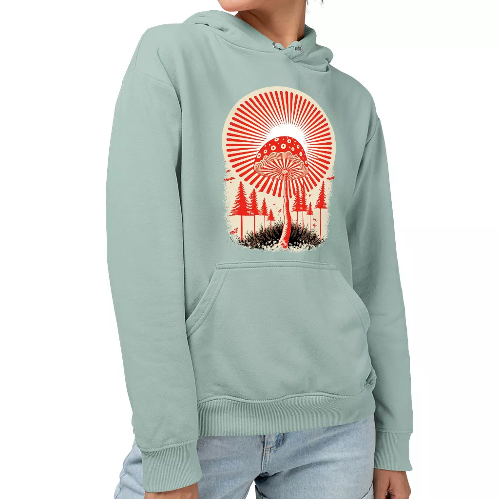 Mushroom Print Sponge Fleece Hoodie – Forest Hoodie – Printed Hooded Sweatshirt