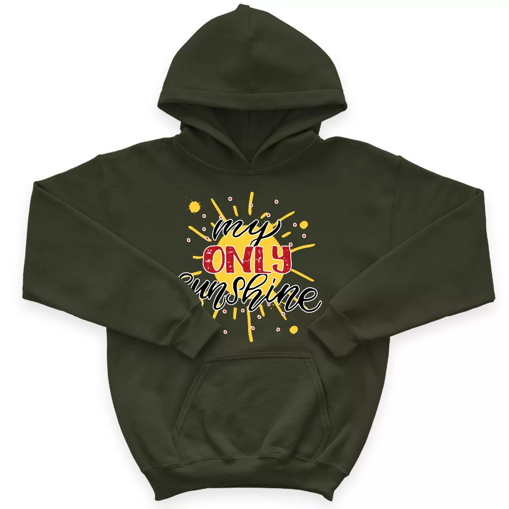 My Only Sunshine Kids’ Sponge Fleece Hoodie is no ordinary piece of clothing. Its top-stitched hood and
