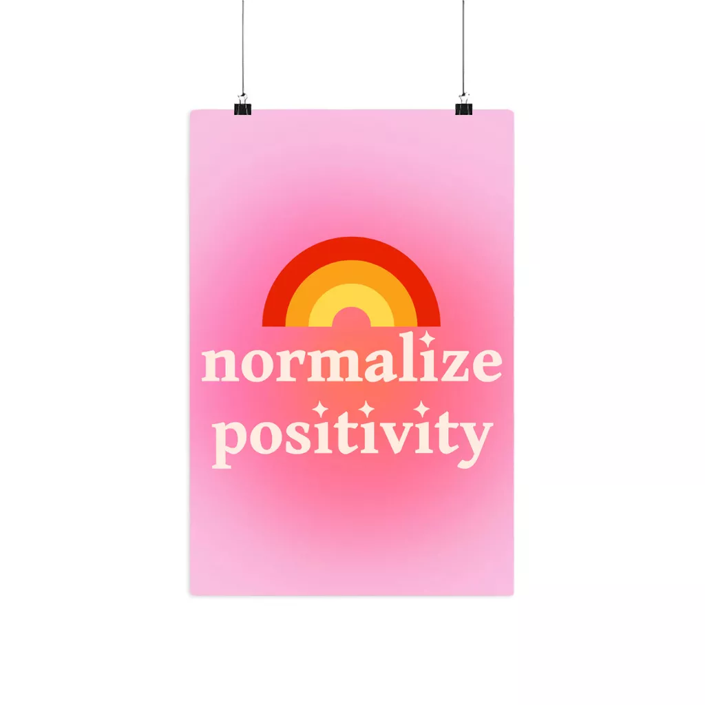 Elevate your space with Normalize Positivity Matte Poster! This unique wall art is made with pigmented archival inks, providing superior fade resistance and permanence to ensure a stunning graphic for years to come. Its matte finish adds modern appeal and a lightweight alternative to framed art. Whether you’re decorating an office, living room, cafĂ© or gallery space, Positive Message Wall Art Print is sure to give your walls a one-of-a-kind touch that won’t go unnoticed. Make an eye-catching statement today with Affirmation Home Decor.Â