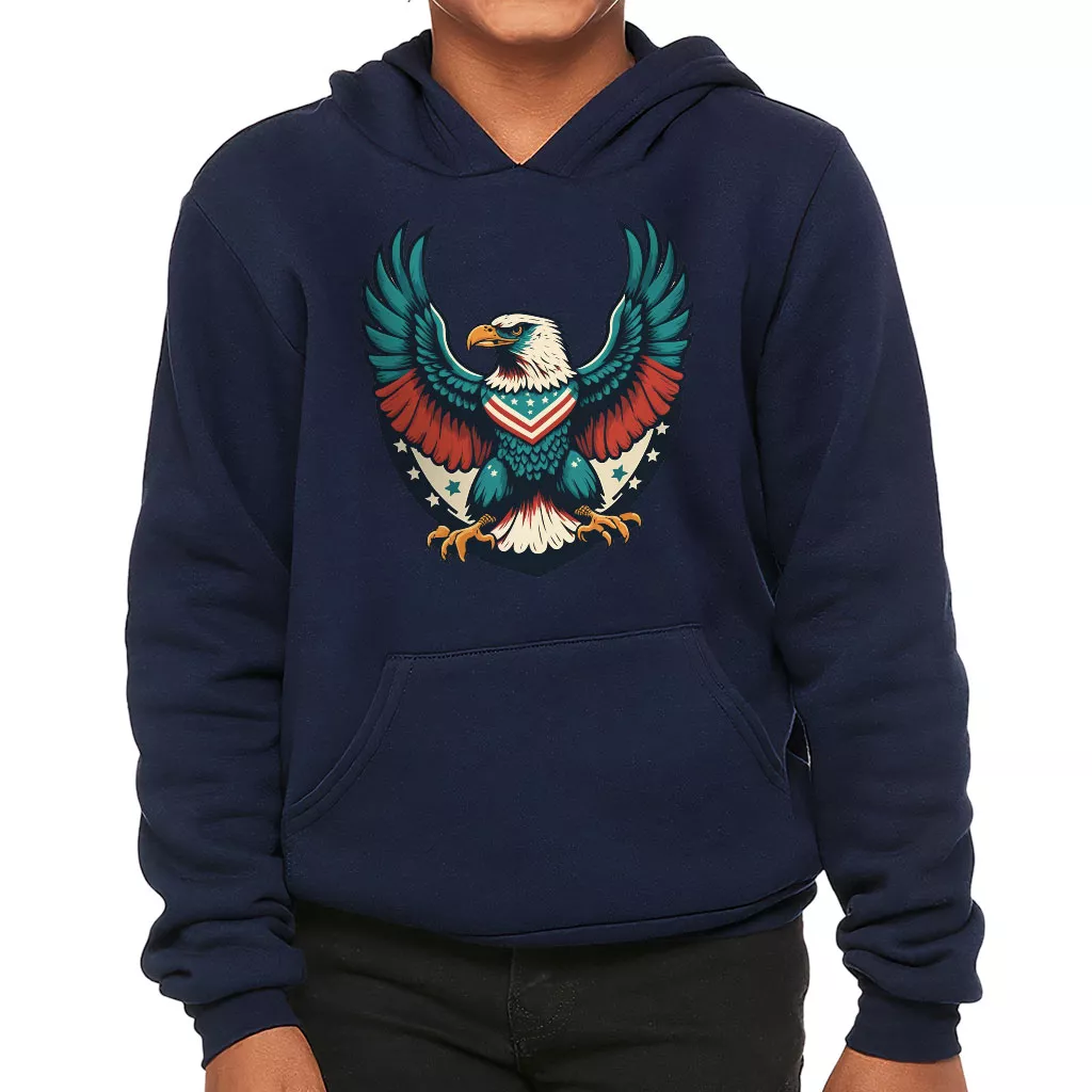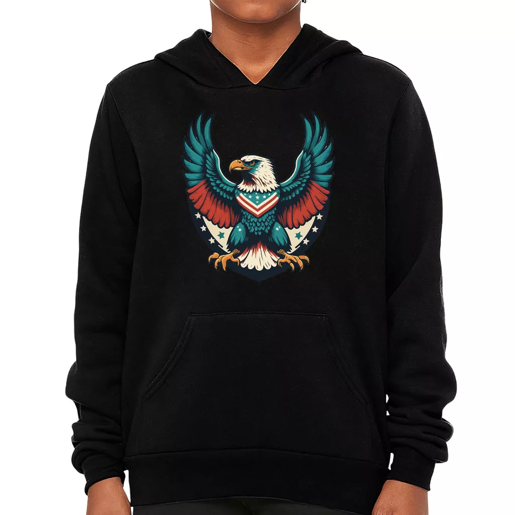 Patriotic Eagle Kids’ Sponge Fleece Hoodie is no ordinary piece of clothing. Its top-stitched hood and