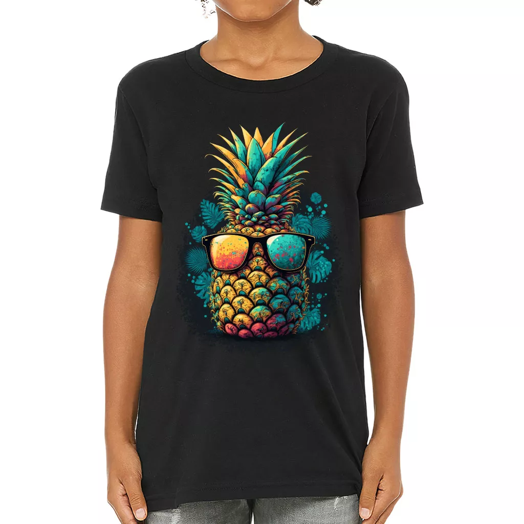 Pineapple With Glasses Kids’ T-Shirt is no ordinary piece of clothing. Its crew neck and short