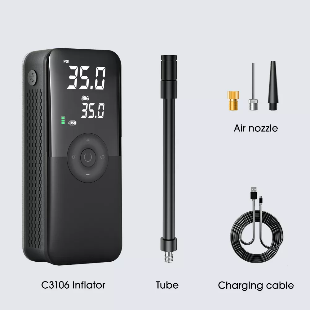 Say goodbye to flat tires and inconvenient stops at the gas station with the Portable Car Air Compressor Electric Tire Inflator Pump. Designed for convenience, portability, and reliability, this high-performance air pump is perfect for your car, motorcycle, and bicycle. Whether you’re on a road trip, commuting, or just need a quick tire top-up, this compact and easy-to-use tire inflator ensures you stay safe and on the move.