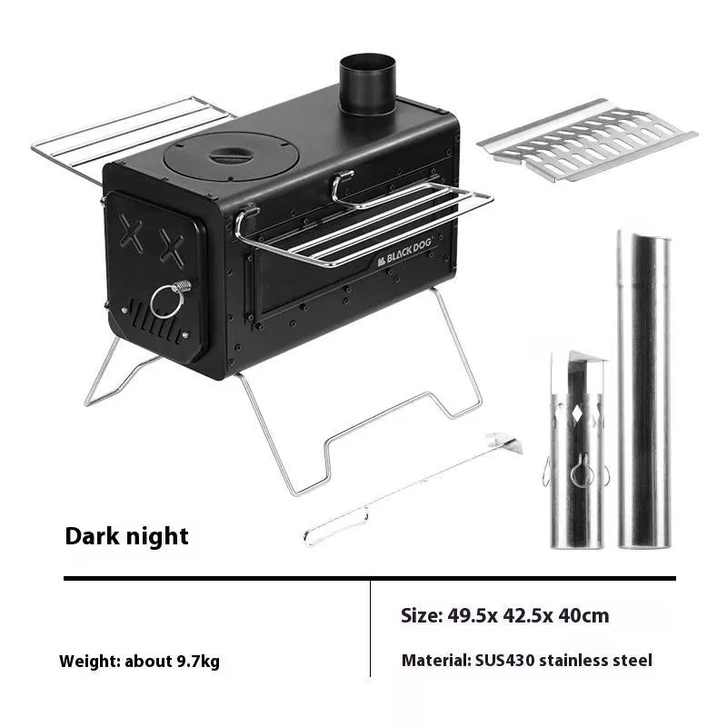 Crafted from high-quality SUS430 stainless steel and finished with a high-temperature black coating, this stove is built to withstand harsh outdoor conditions. Its foldable, one-piece design makes setup and storage a breeze, while the spacious firebox allows for consistent, even burning using solid firewood. With a manual ignition system and simple operation, it’s the ideal companion for everything from deep-woods camping to backyard cookouts or patio heating.