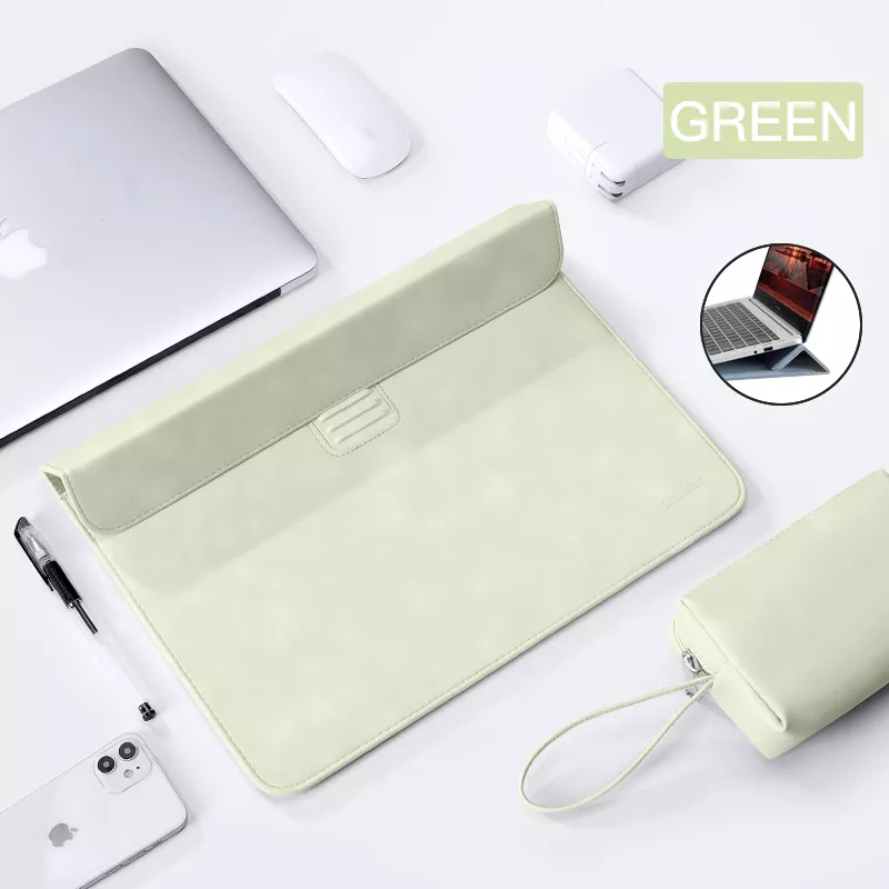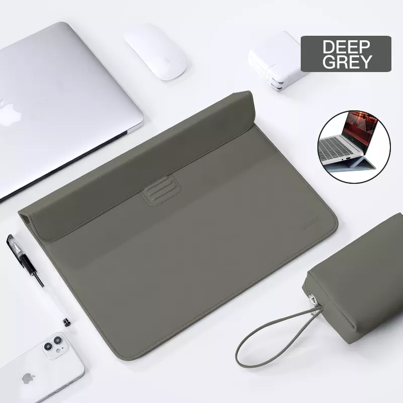 Whether you’re heading to the office, traveling, or working from a coffee shop, this laptop sleeve offers the perfect combination of protection and functionality. The water-resistant PU material shields your MacBook from daily wear and tear, while the stand feature makes it easy to work comfortably wherever you are. Its slim profile ensures you won’t be weighed down, and the modern, stylish design fits seamlessly into any lifestyle.