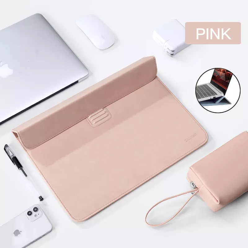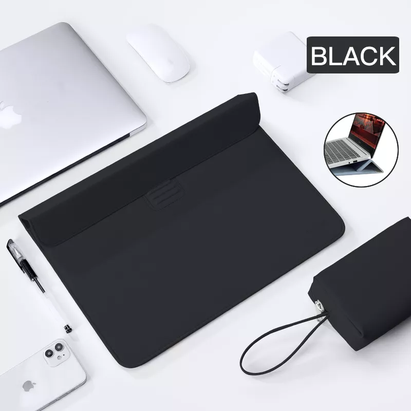 Made from high-quality PU material, this sleeve is not only lightweight but also water-resistant, providing an extra layer of protection against spills, dust, and scratches. Its solid, unisex design makes it a timeless choice for both men and women. Beyond its classic look, the laptop case features a multi-functional design, doubling as a portable stand to improve your posture and boost productivity while working.
