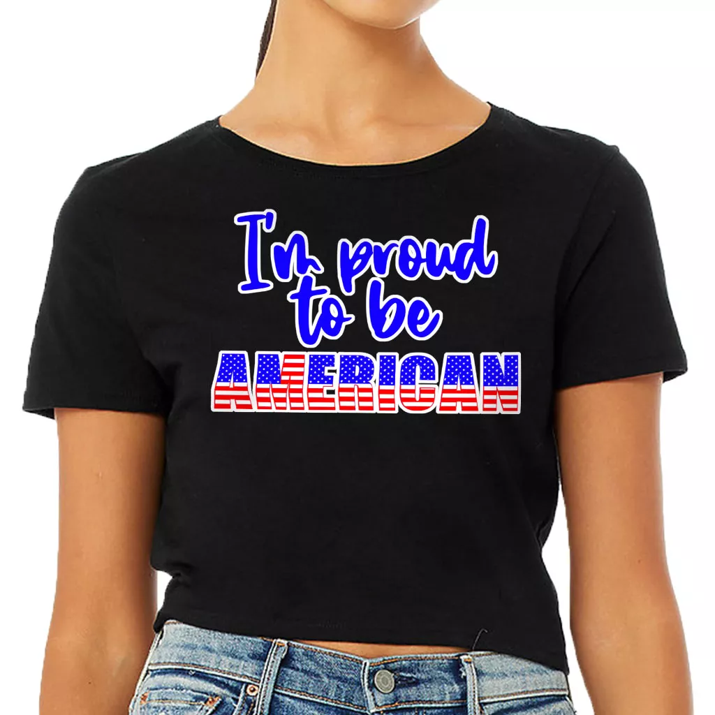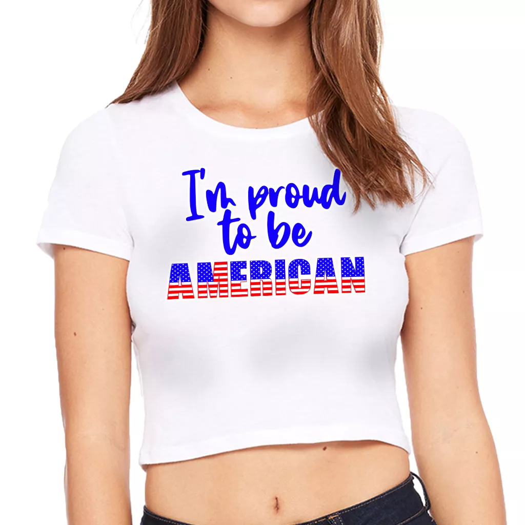 Proud to Be American Women’s Cropped T-Shirt – Patriotic Crop Top – USA Flag Cropped Tee